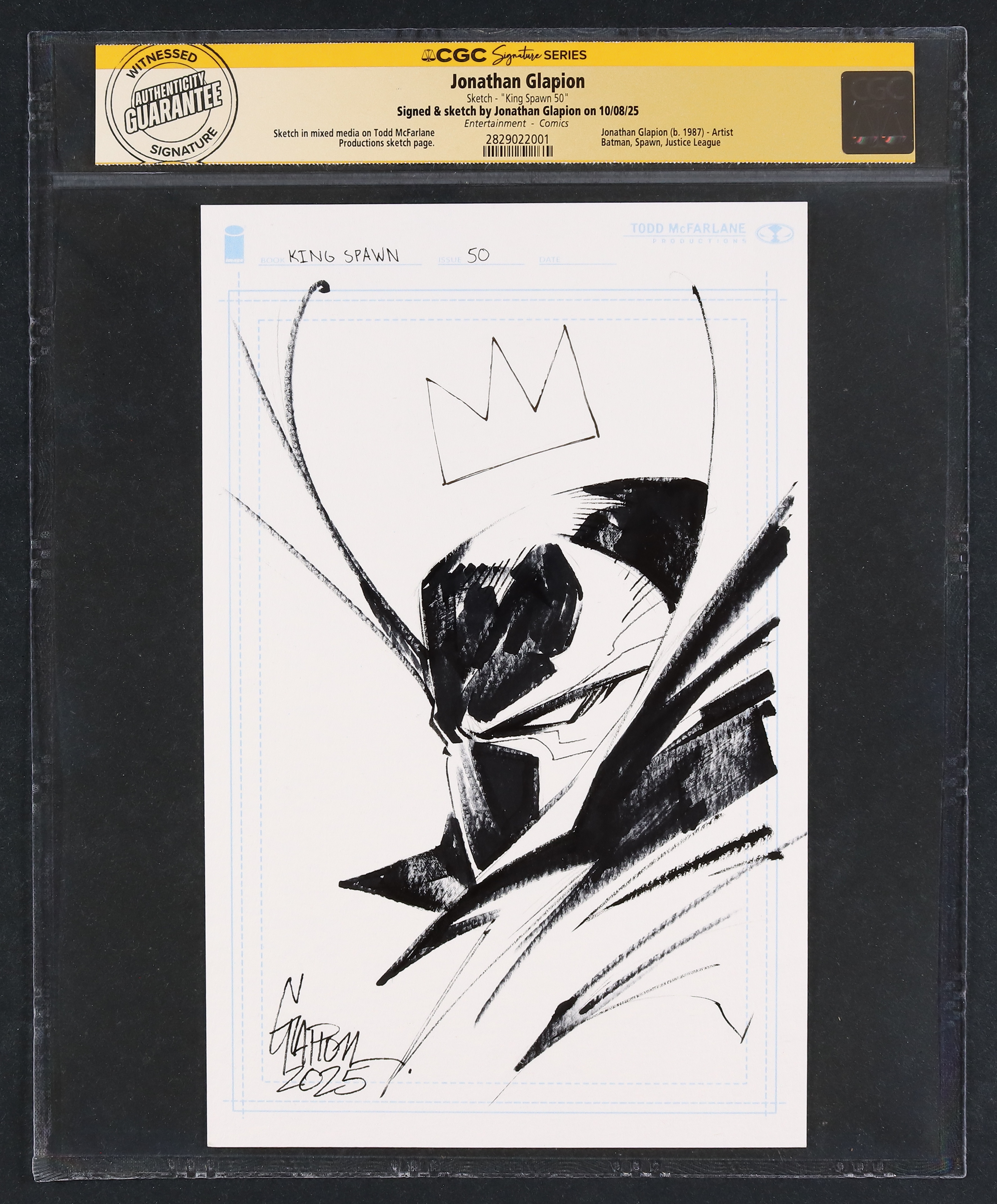 CGC Label Number: 2829022001. Signed and sketch by Jonathan Glapion on 10/08/25. Sketch measures 6 1/4" x 10", CGC holder measures 9 3/4" x 12".
