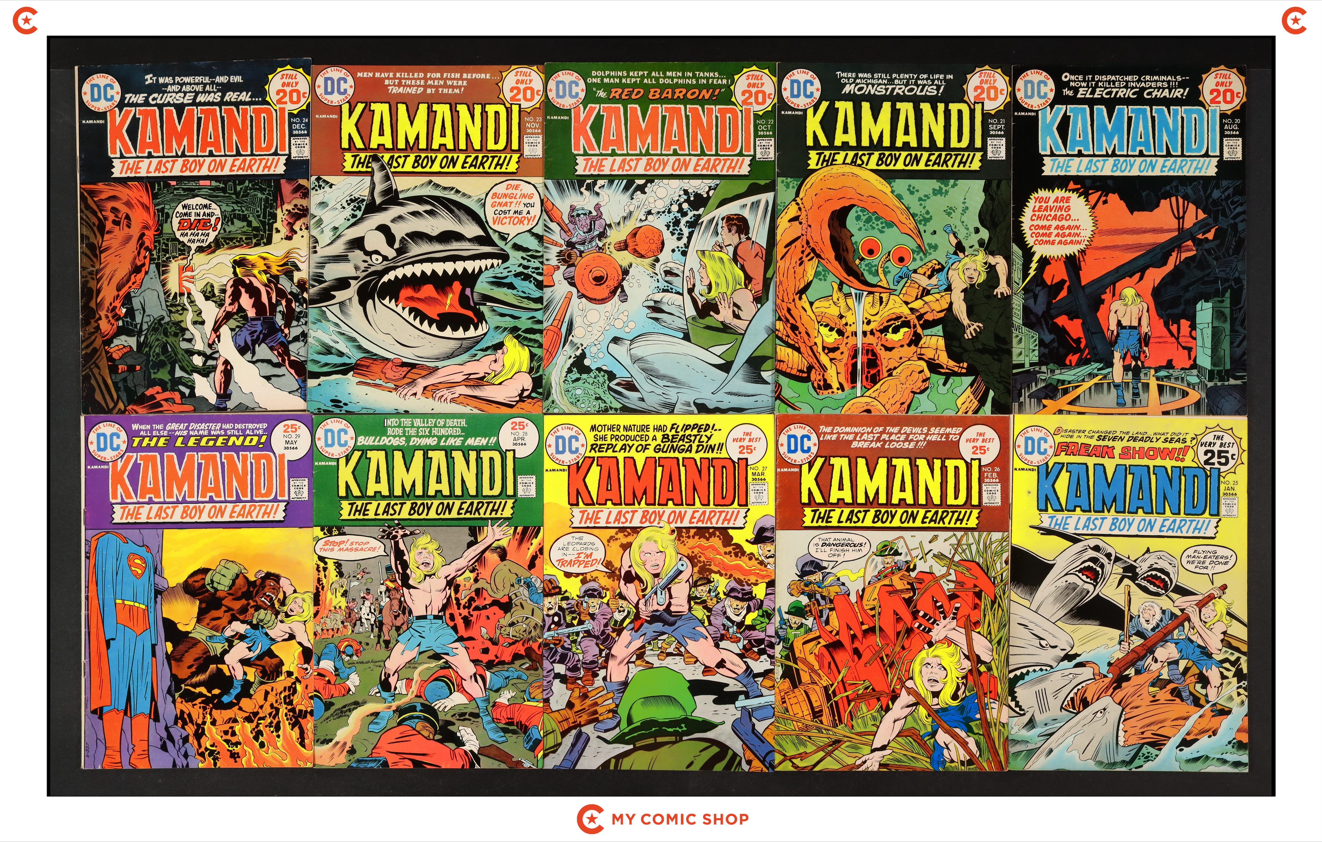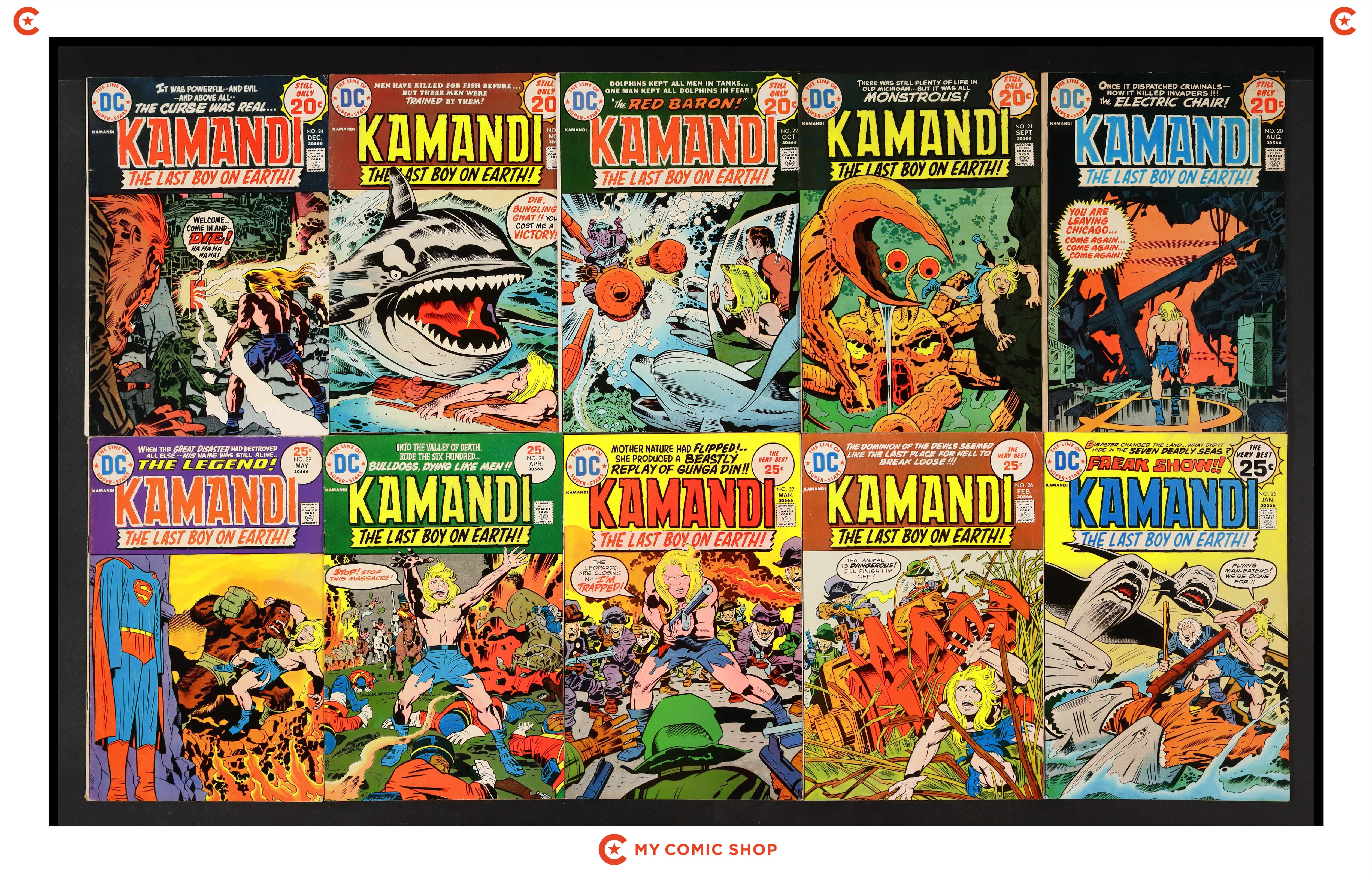 Issues 20-29 of Kamandi (1972 DC). Most will grade in the GD/VG to FN+ range.