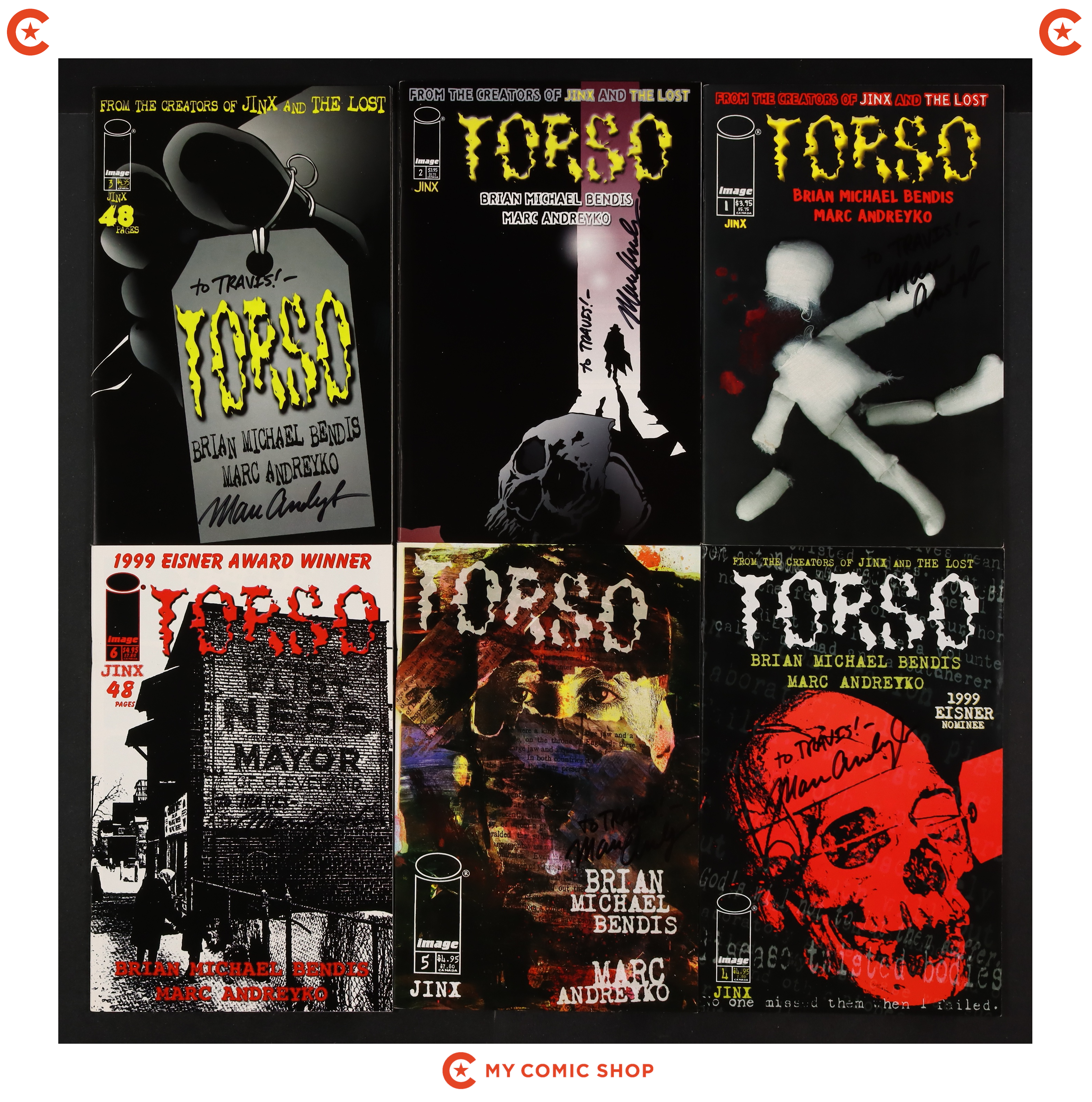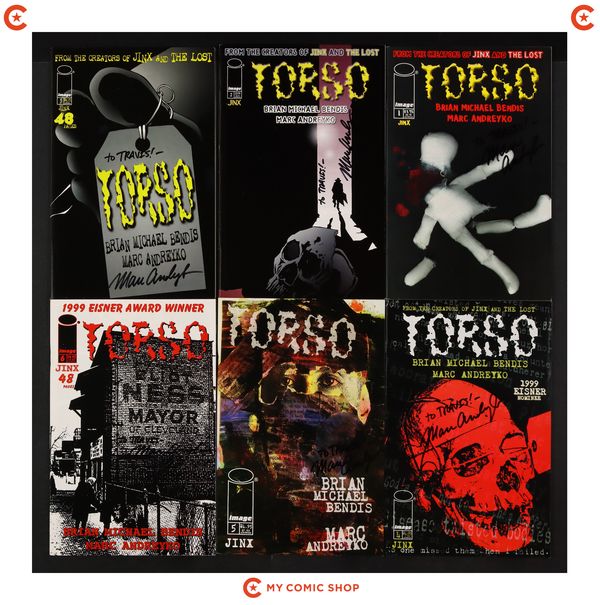 Issues 1-6 of Jinx Torso (1998) signed by Marc Andreyco. No autograph certification is included. No autograph certification is included. Most will grade in the FN to VF range.