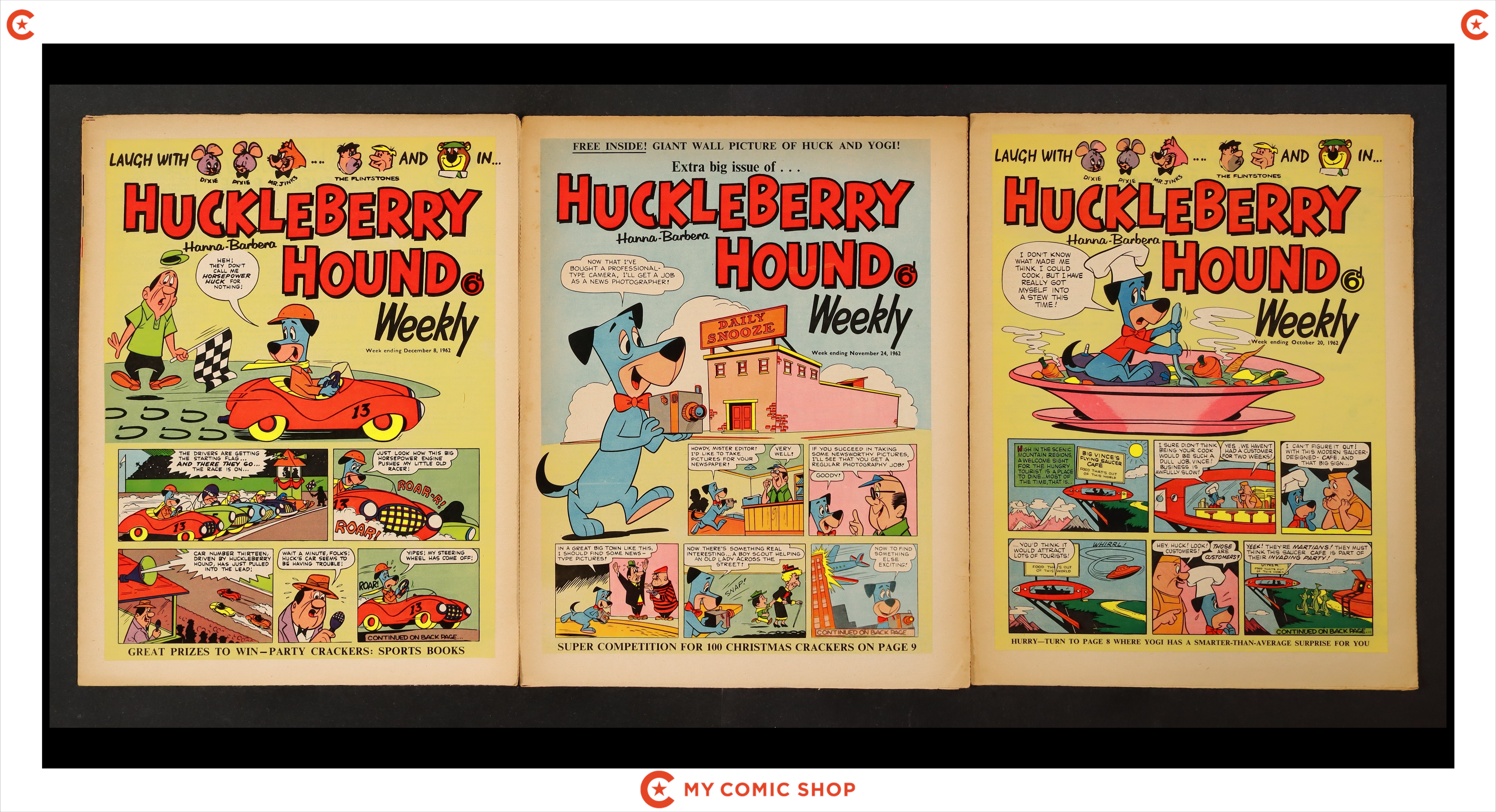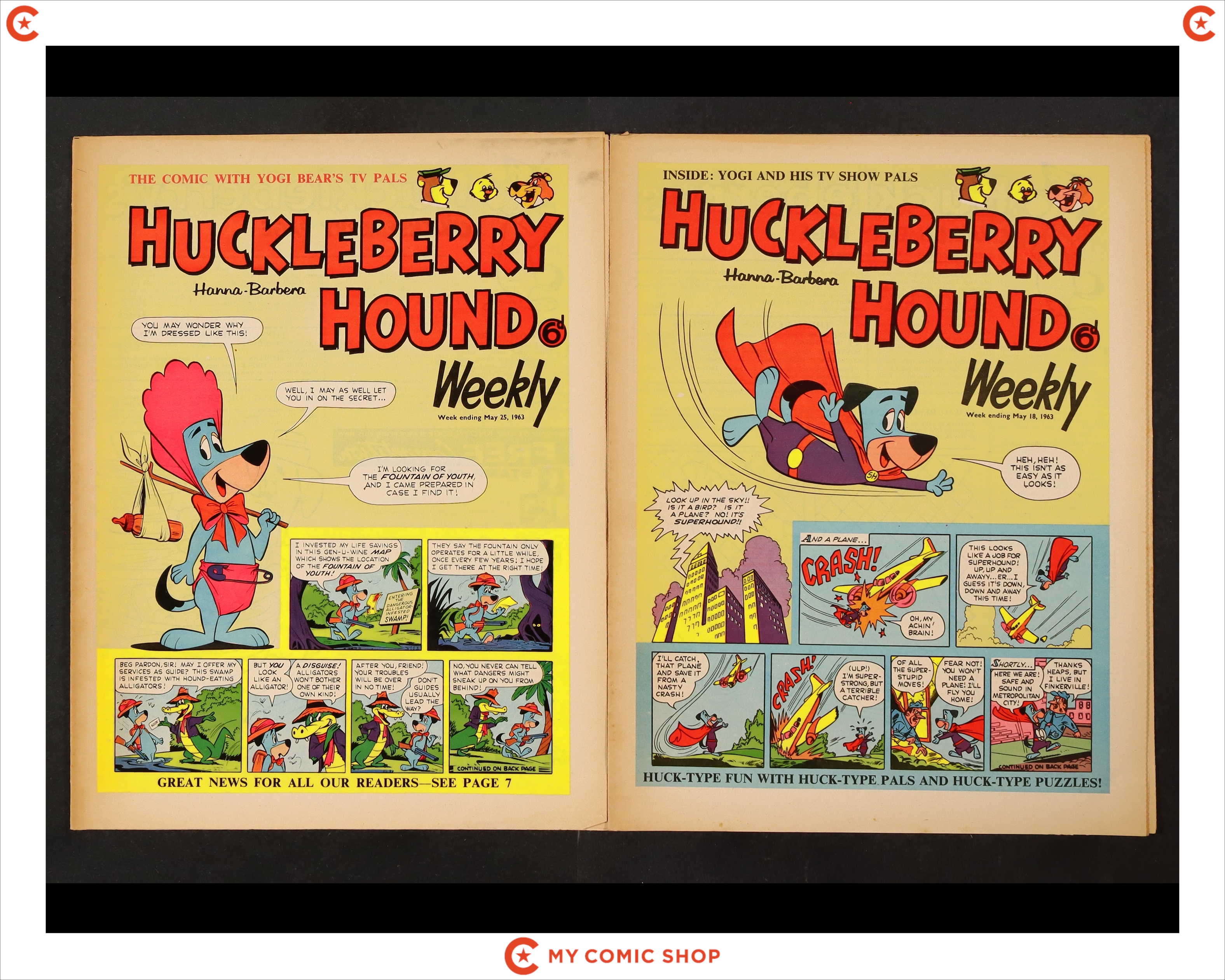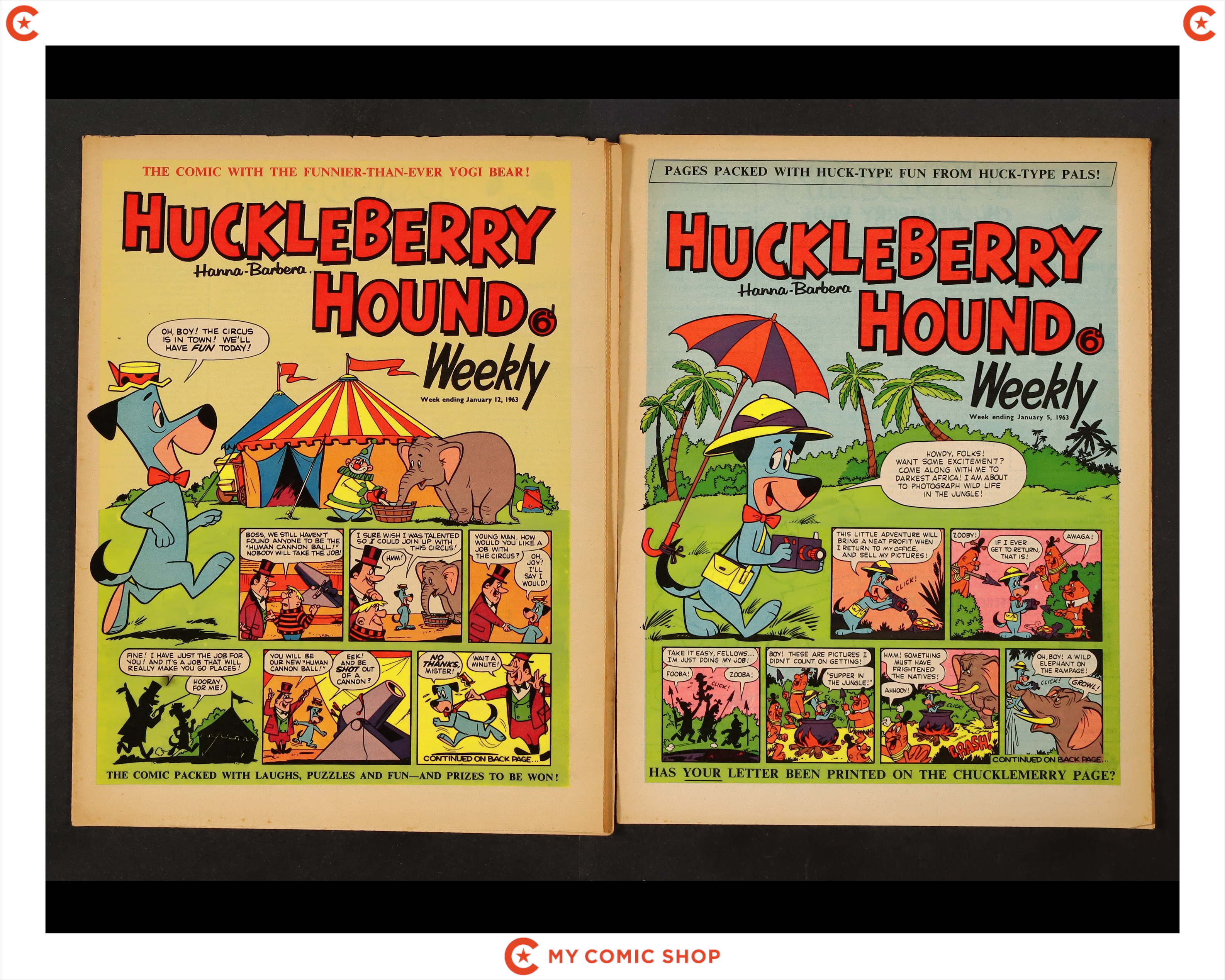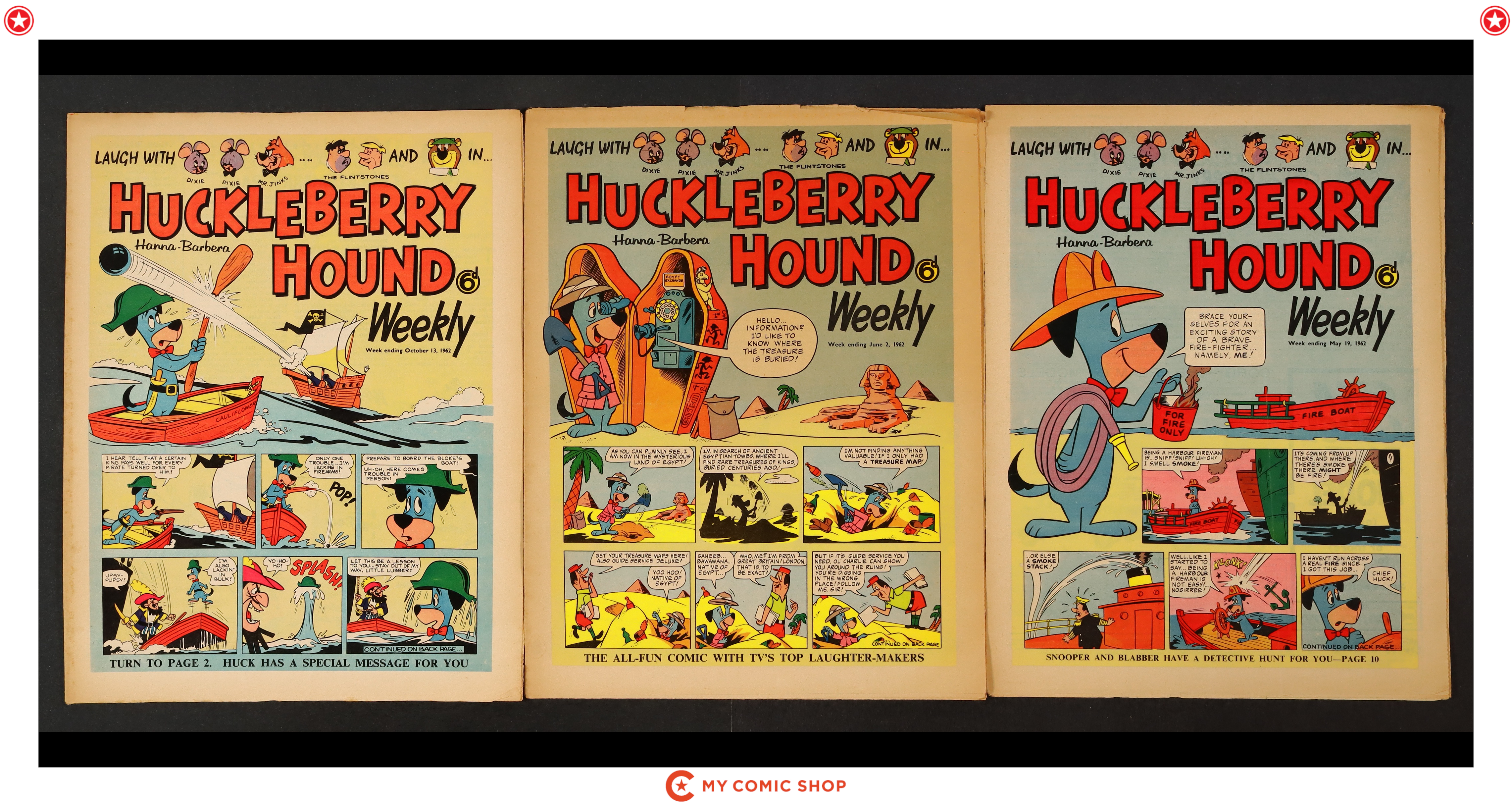 Issues May 19 1962; June 2 1962; October 13 1962; October 20 1962; November 24 1962; December 8 1962; January 5 1963; January 12 1963; May 18 1963; May 25 1963 of Huckleberry Hound Weekly (UK 1961 City/Hayward). Most will grade in the VG to FN range, with January 12 1963 grading at GD.