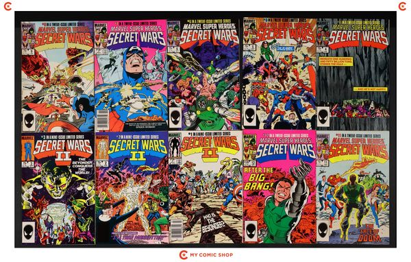 Issues 1D-3D, 4-9 of Secret Wars II (1985 Marvel); and Marvel Super Heroes Secret Wars (1984) 9. Most will grade in the VG/FN to FN/VF range; with 4 and 5 grading at GD/VG.