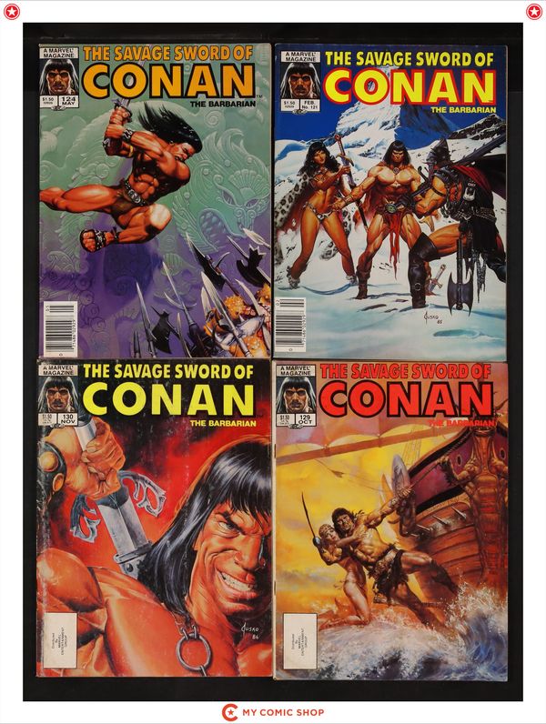 Issues 109, 111, 113, 114, 116, 119, 121, 124, 129, and 130 of Savage Sword of Conan (1974 Marvel). Most will grade in the FN range with some grading VG.