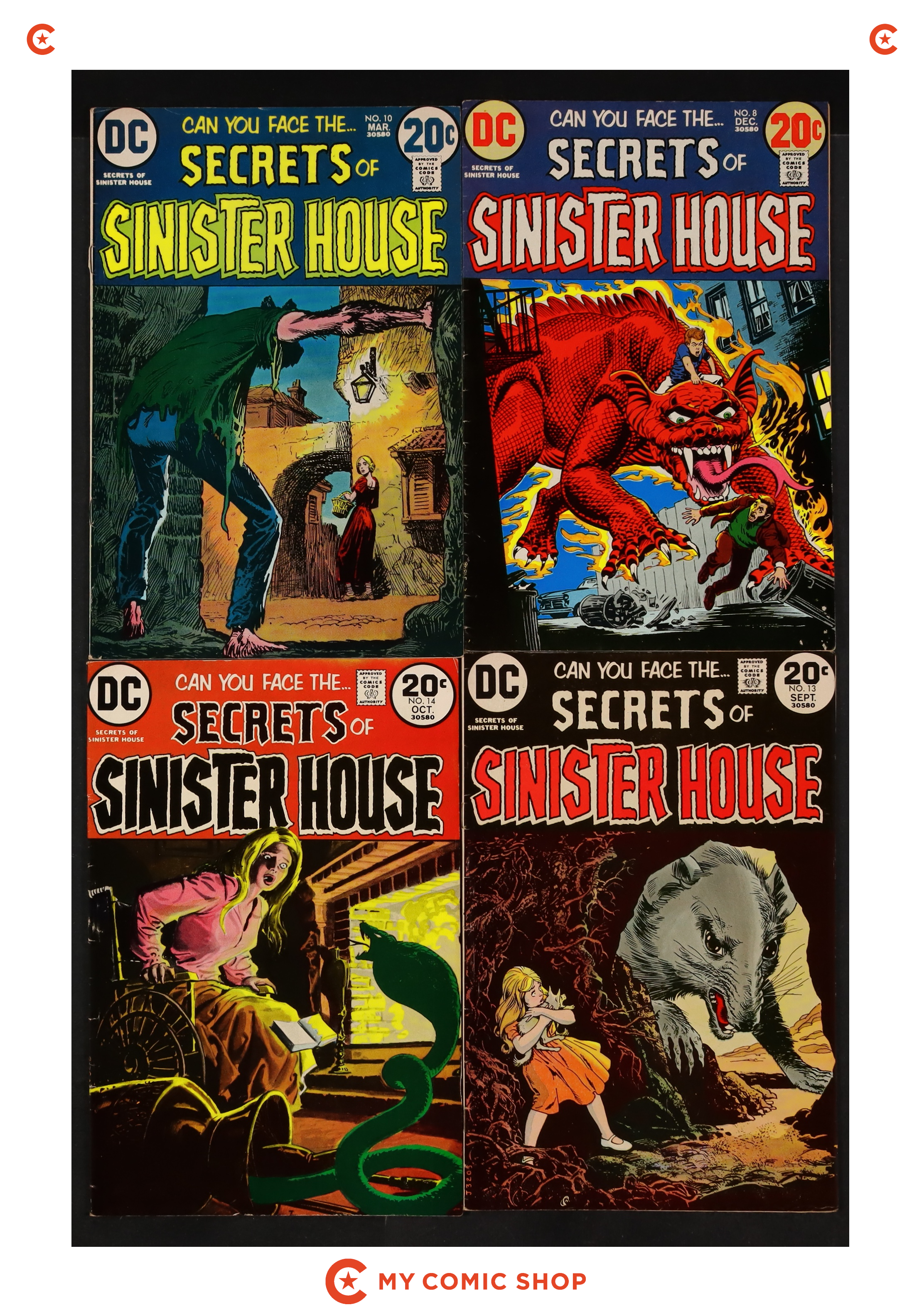 Issues 8, 10, 13-15, 17, and 18 of Secrets of Sinister House (1972). Most will grade in the FN to VG range.
