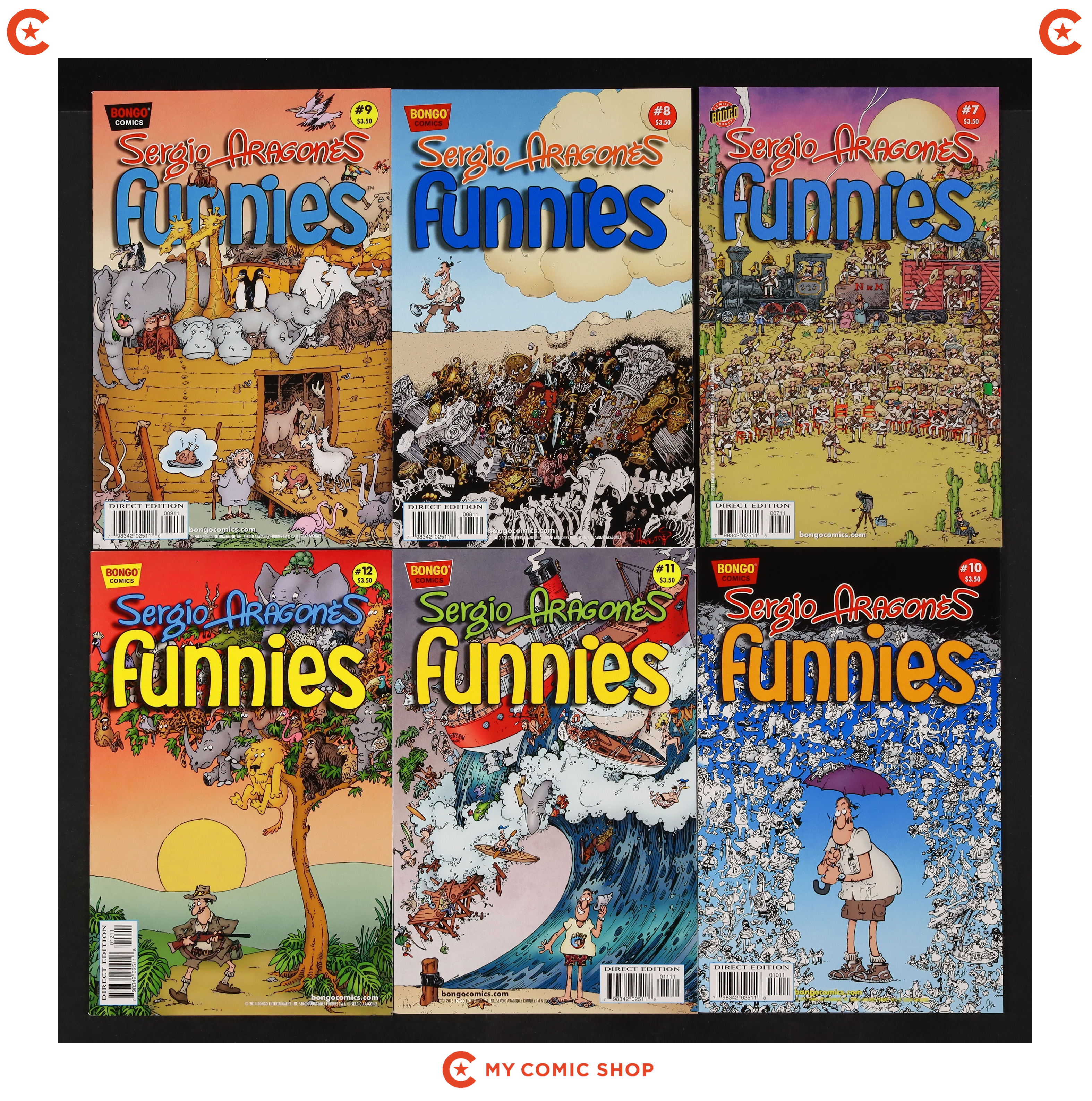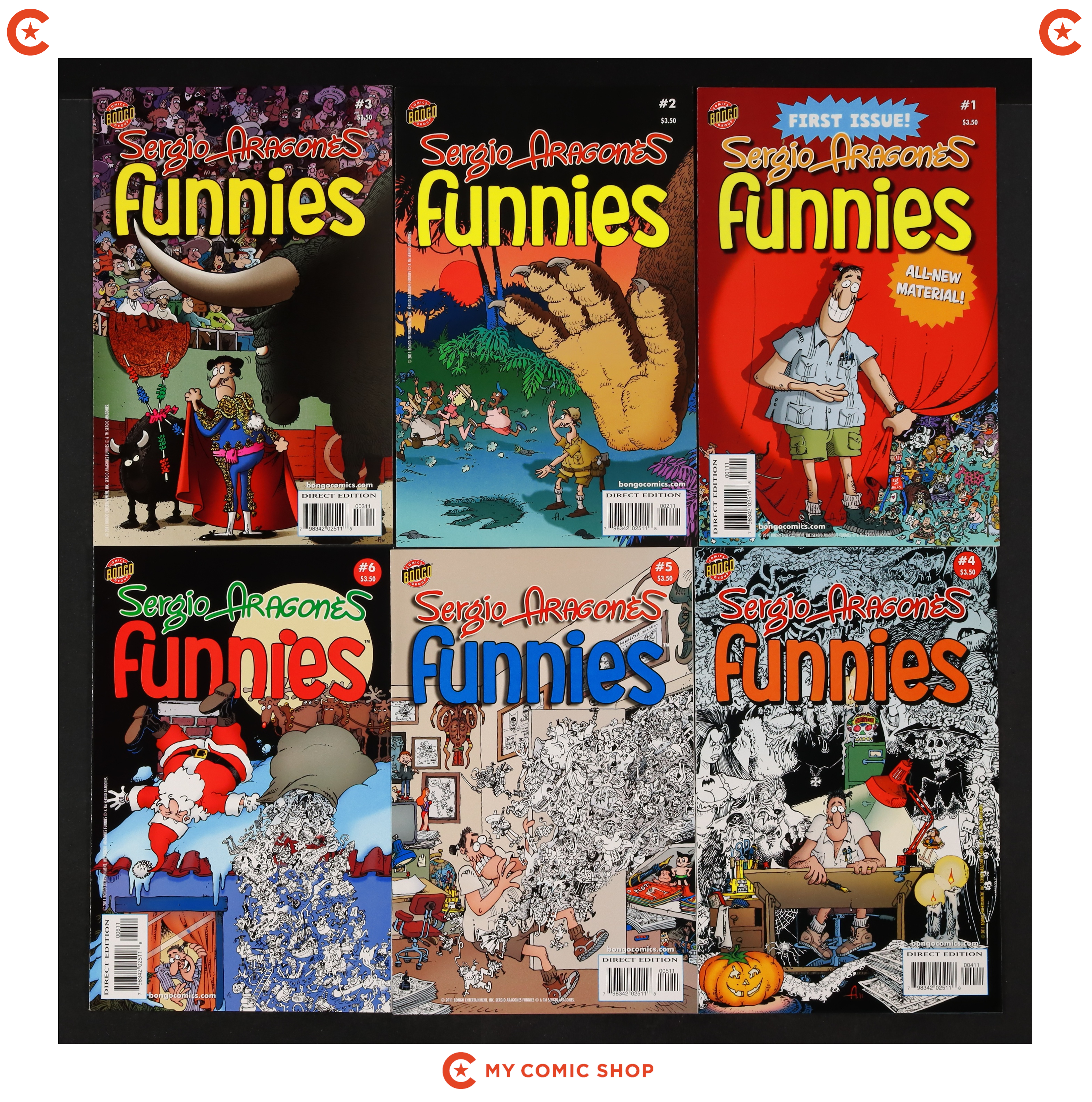Issues 1-12 of Sergio Aragones Funnies (2011 Bongo). Most will grade in the NM to VF range.