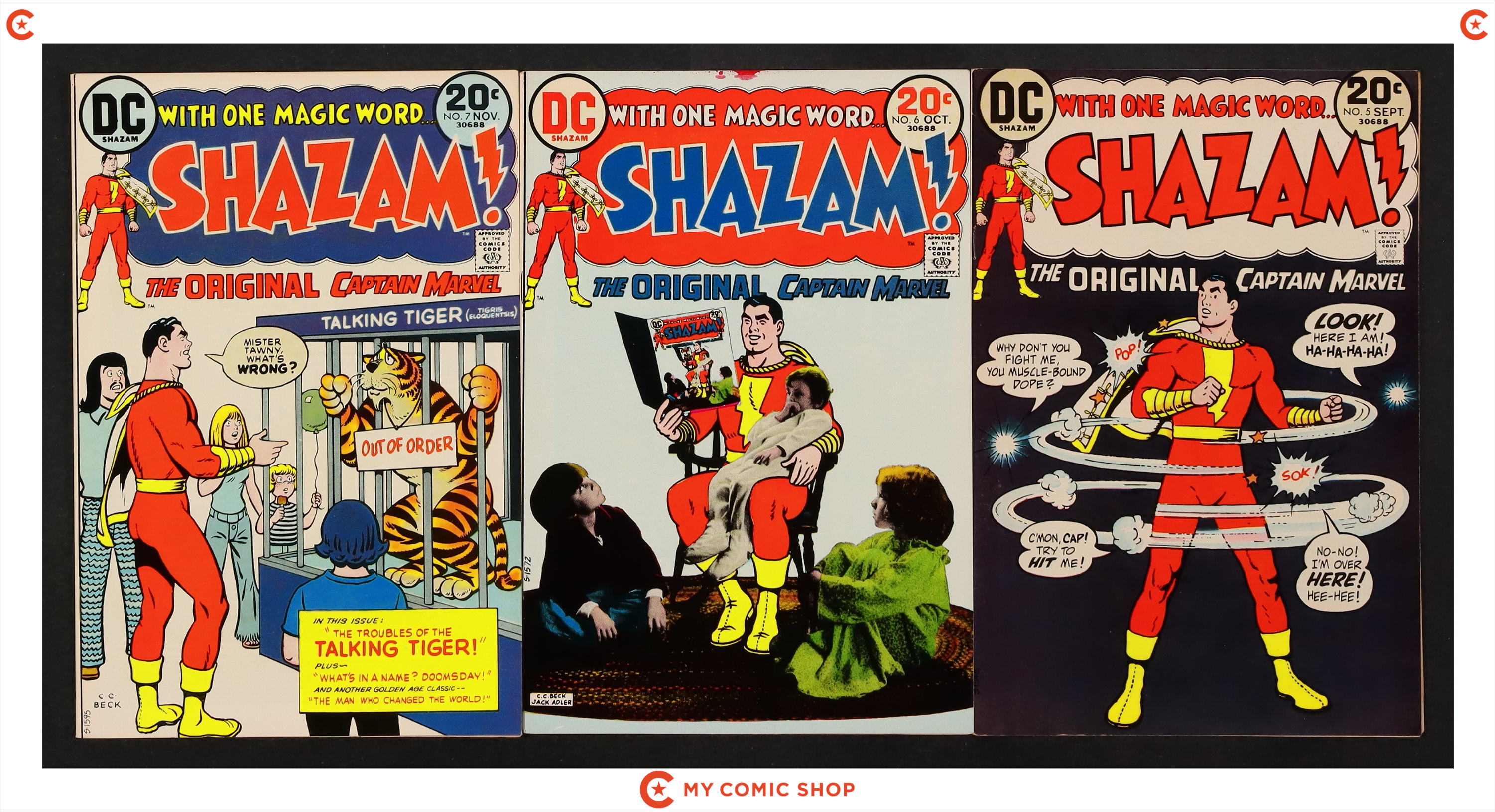 Issues 1-7 of Shazam (1973). Most will grade in the VF range with a couple grading FN+ and #5 grading VG.