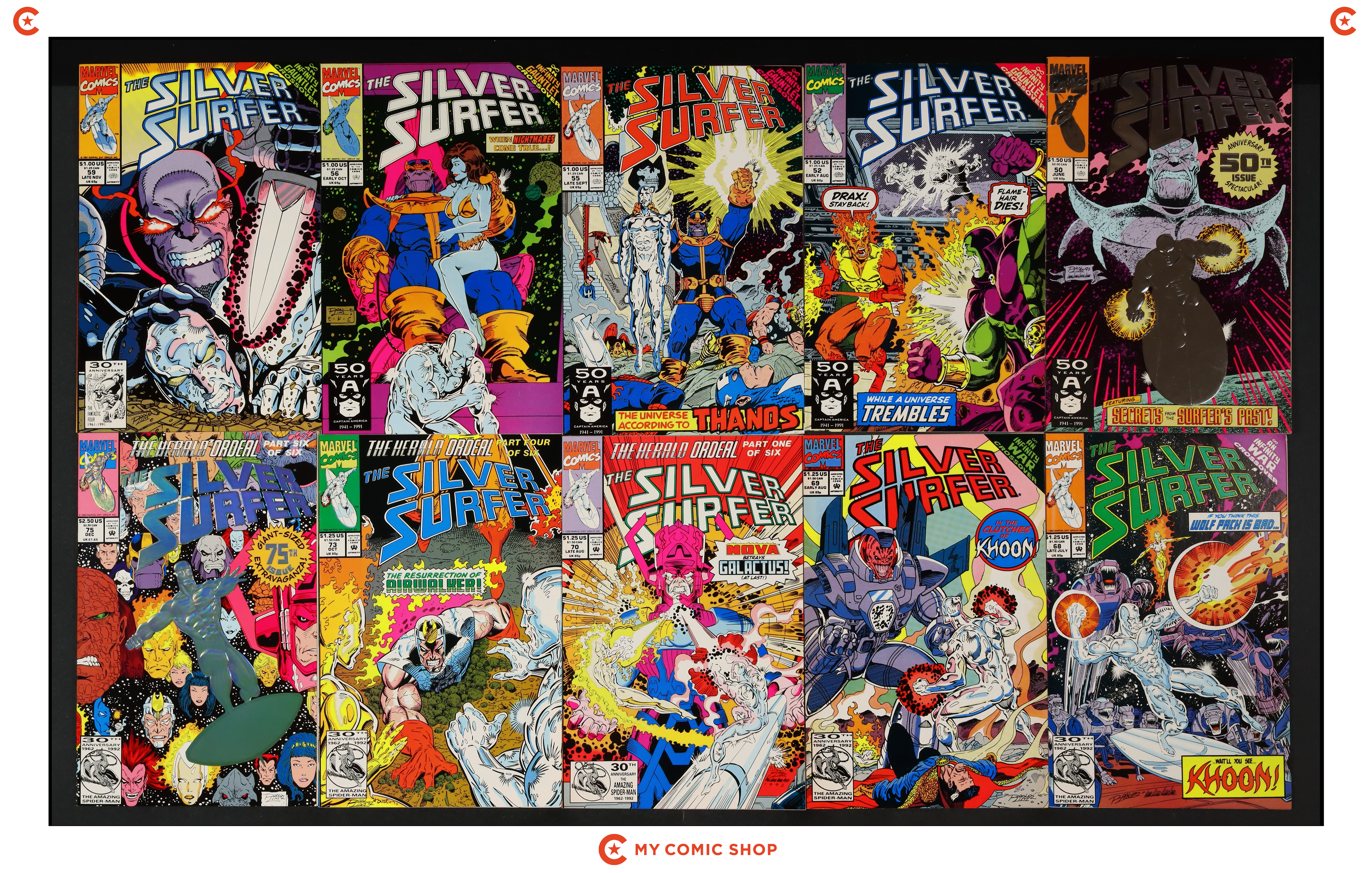 Issues 35, 38, 50A, 51, 52, 54-58 of Silver Surfer (1987 2nd Series). Most will grade in the FN/VF to VF/NM range.
