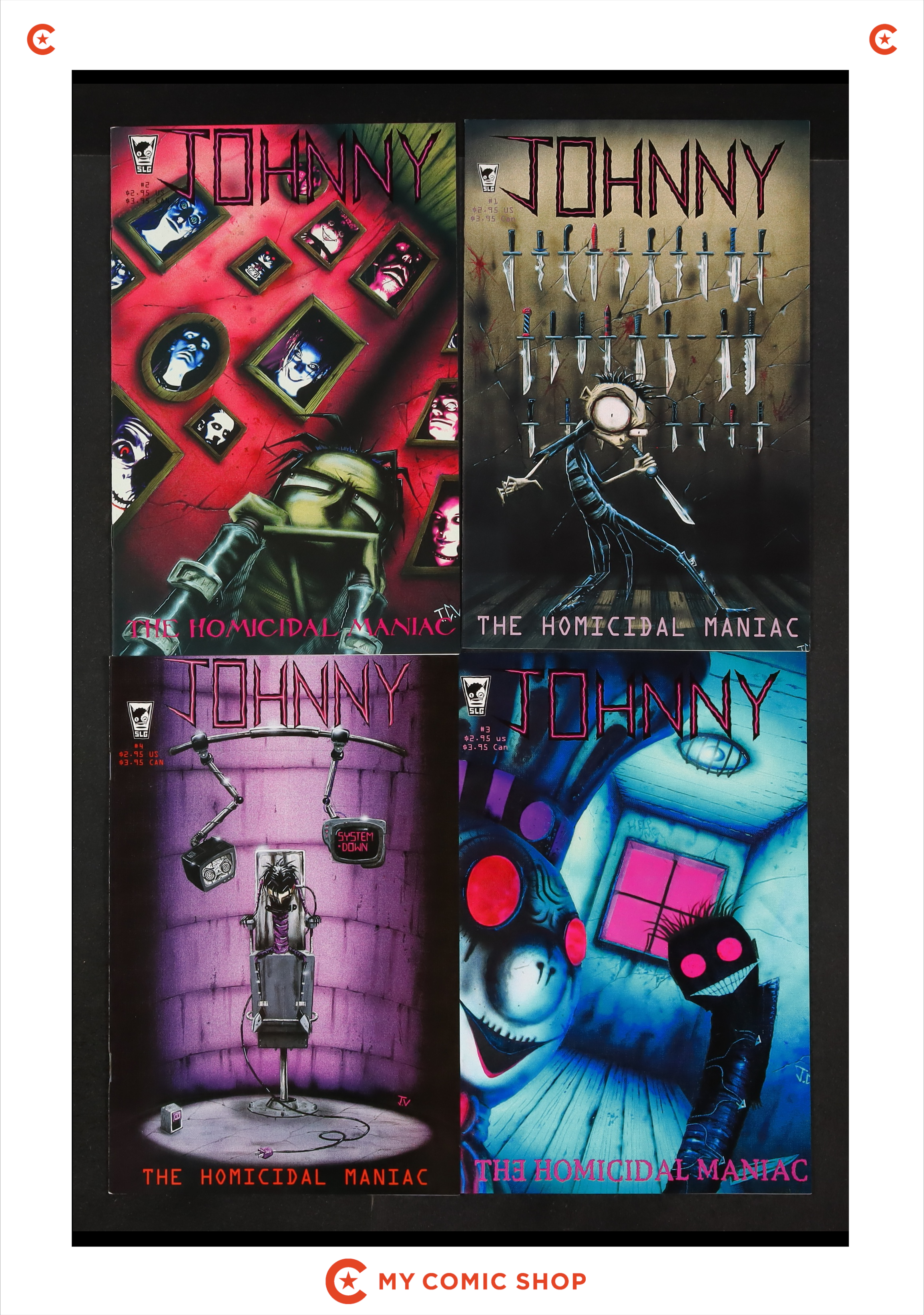 Issues 1-LATER, 2-LATER, 3-LATER, 4-LATER, 5-LATER, 6-LATER, 7-LATER of Johnny The Homicidal Maniac (1995). Most will grade in the FN to VF range.