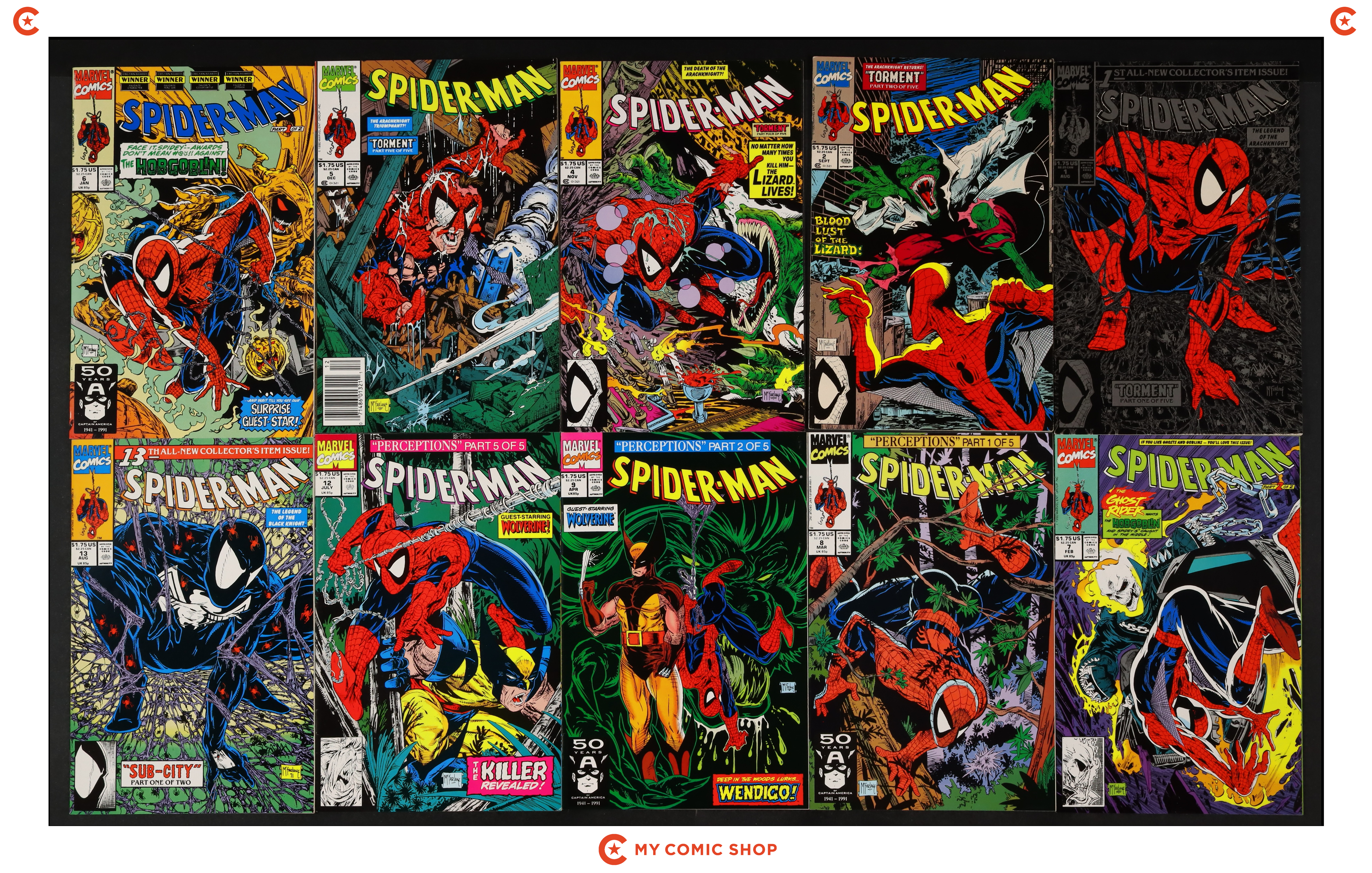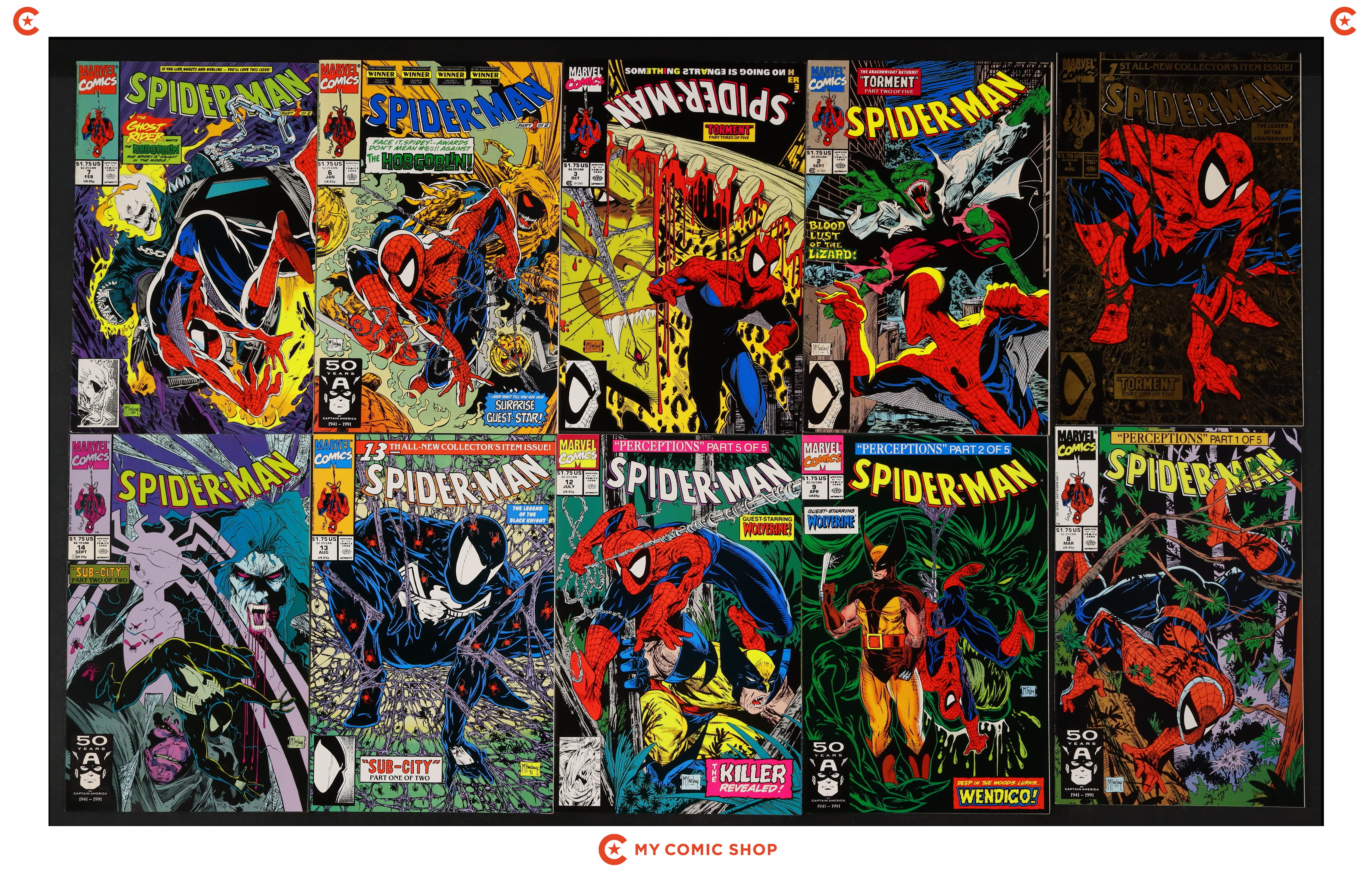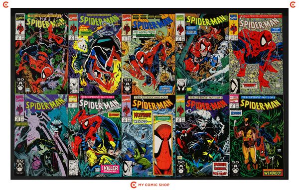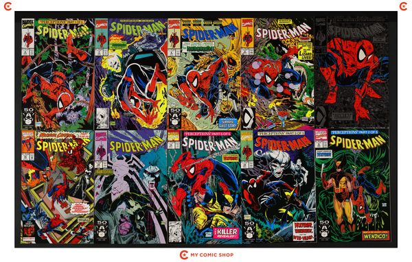 Issues 1SILVER, , 2, 4, 5N, 6-9, 12, and 13 of Spider-Man (1990 Marvel). Most will grade in the VF range with a few grading FN.