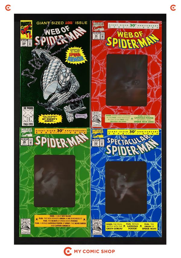 Issues 90D, 100D of Web of Spider-Man (1985 1st Series), issue 189A.D of Spectacular Spider-Man (1976 1st Series), and issue 26D of Spider-Man (1990 Marvel). Most will grade in the VF to NM range.