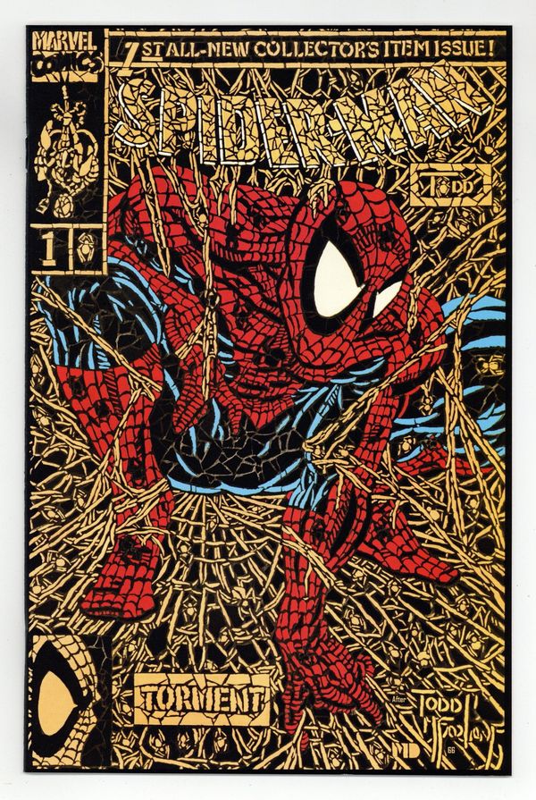 Ends Feb 23 9:13 PM CST Bid History 5 bids Current Bid $9 Your Secret Max Bid If you'd like to bid, please log in or register. Unbagged Direct Edition - Torment Part 1 of 5. "Torment" Script and art by Todd McFarlane. Cover by Todd McFarlane. Fresh off his legendary run on the Amazing Spider-Man series, superstar artist Todd McFarlane takes the reins of his own Spider-title! Right off the bat the breathtaking action begins as mysterious and ominous drums awaken the Lethal Lizard! And send the reptilian creature on a path of death and destruction thru New York City! Spider-Man's nightmare is just starting! Appearance by Mary Jane Watson. (Notes: Spider-Man #1 was one of the first Marvel issues to feature numerous variant covers. The Spider-Man (1990) series became the fourth monthly title for the web-slinger. This issue was published the same month as Amazing Spider-Man 337. The letters page features an essay by Todd McFarlane. The webbing on the cover may be gray or purple.) 32 pages. Cover price $1.75.