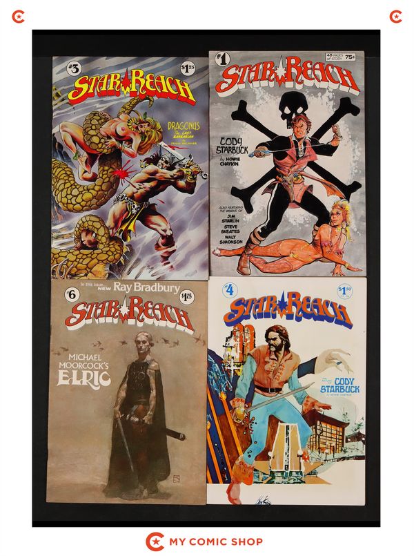 Issues #1, 1st Printing, #3, 2nd Printing, #4, 2nd Printing, and #6, 1st Printing of Star Reach (1974). Most will grade in the FN/VF to FN range.
