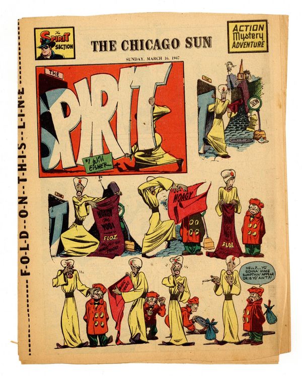 Ends Feb 23 9:14 PM CST Bid History 4 bids Current Bid $5 Your Secret Max Bid If you'd like to bid, please log in or register. Spirit Weekly Newspaper Comic Insert. 7-1/2 x 10 inches, 16 Pages, full color, all newsprint with no slick cover. Scripts, pencils/inks by Eisner except where noted.