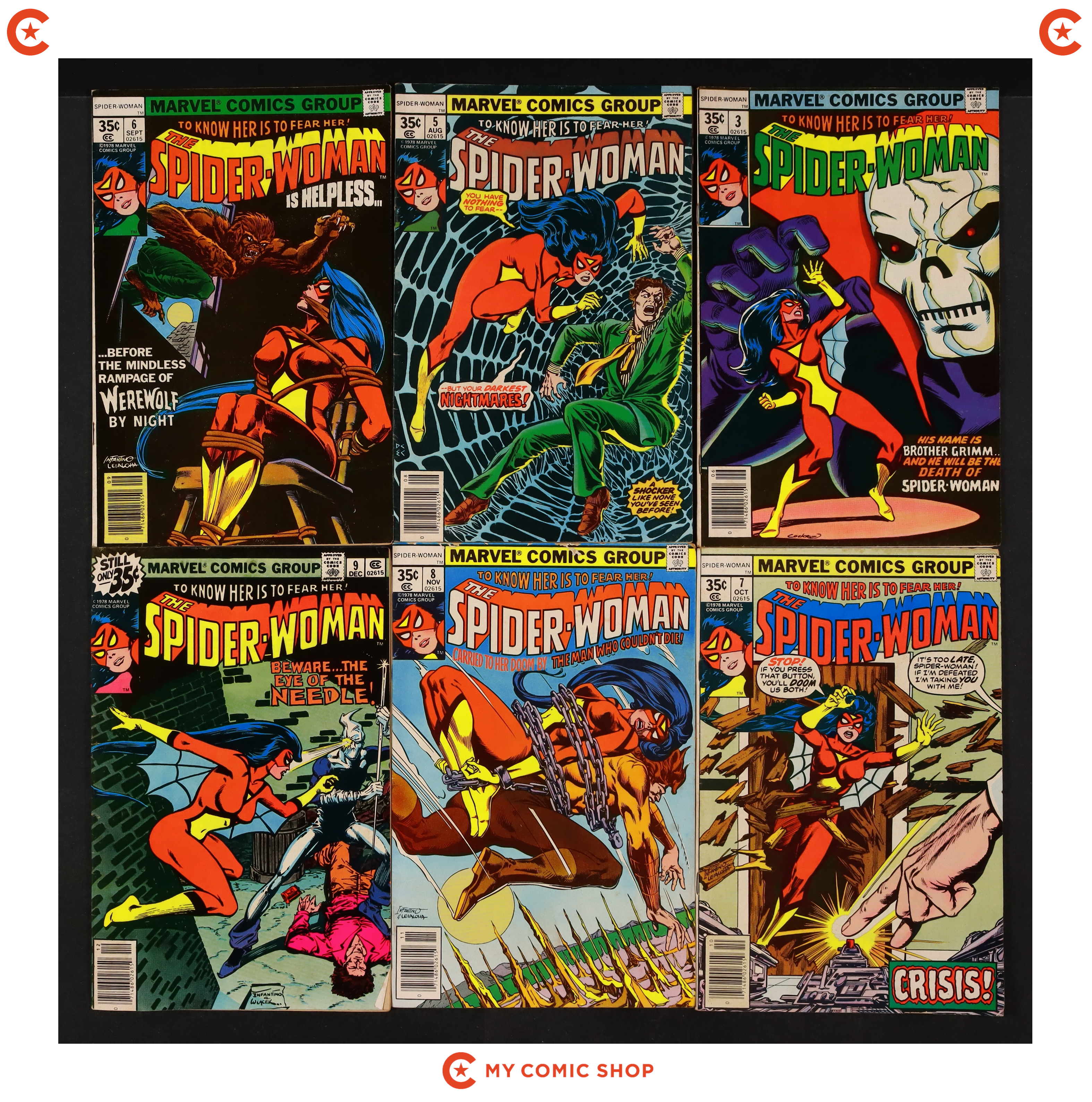 Issues 3, 5-9, 12-14, 16N, 17N, and 19 of Spider-Woman (1978 Marvel 1st Series). Most will grade in the FN to VG range with a couple grading GD.
