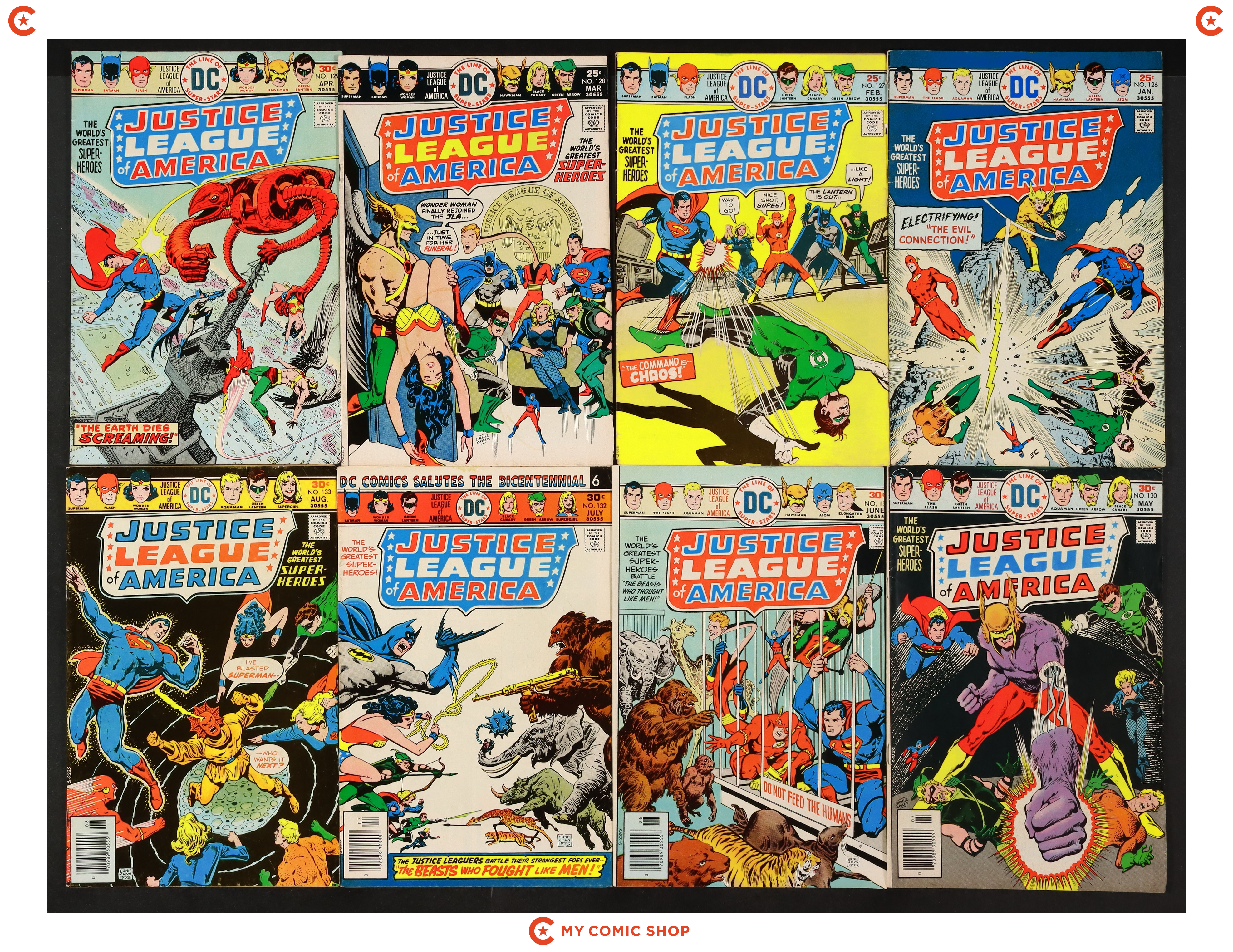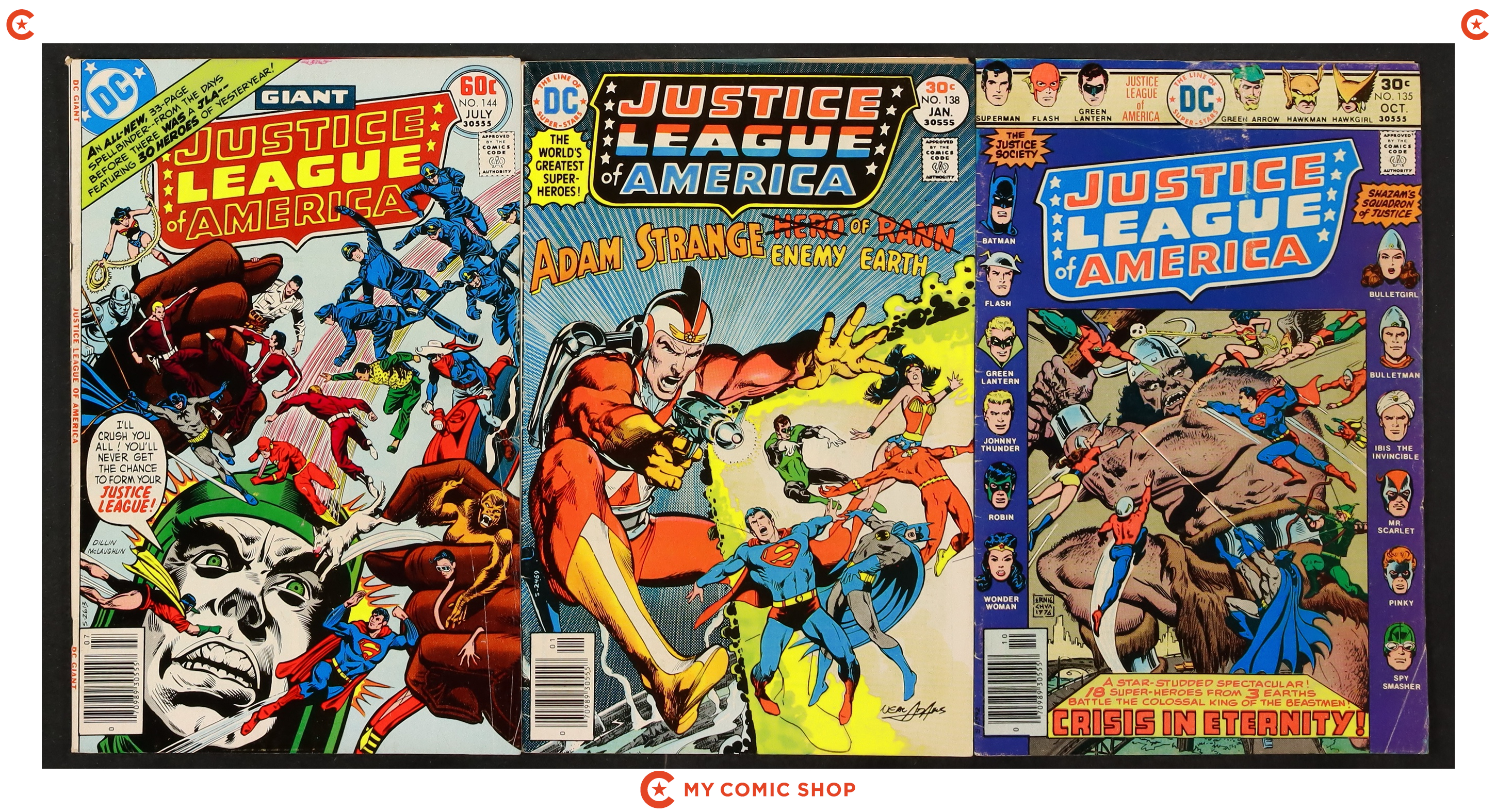 Issues 126, 127, 128, 129, 130, 131, 132, 133, 135, 138, 144 of Justice League of America (1960 1st Series). Most will grade in the GD to VG/FN range.