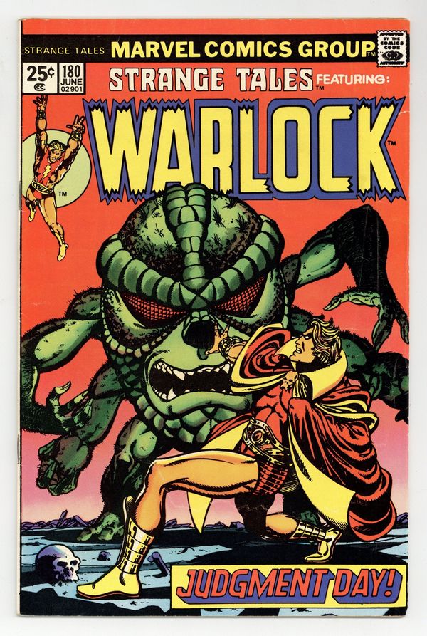 Starts Mar 2 Cover art by Jim Starlin. Warlock begins in this title in "Who Is Adam Warlock?", script and art by Jim Starlin; Sphinxor retells the Origin of Warlock, his encounters with Thor and the High Evolutionary, the Creation of Counter-Earth and Warlock's Battle against the Man-Beast; First appearance of the Magus; Cameo appearances by the Hulk. The story continues from Incredible Hulk 178. 36 pgs., full color. Cover price $0.25.