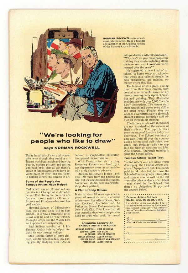 Starts Later today Prototype issue (Professor X). Cover pencils by Jack Kirby, inks by Christopher Rule. "The Man In The Iron Box!", art by Carl Burgos; Certain that the world will soon descend into nuclear war, a brilliant scientist goes into cryogenic suspension for a million years, hoping to awaken in a more enlightened time. "The Talent" text story. "Rocket Ship X-200," art by Don Heck; An aging space pilot is mocked for his slow ship, but when an invading armada approaches Earth his ship is the first to see it. "Journey into Nowhere!", art by Joe Sinnott; Two scientists try to travel to the future, but arrive in the stone age; They believe they have proved travel into the future impossible, not suspecting that they actually saw the world after the destruction of civilization by war. "The World That Was Lost!", pencils by Jack Kirby, inks by Christopher Rule; An old eccentric in a wheelchair hires a sea captain to take him to a spot where he believes that the lost continent of Atlantis lies; When they reach their destination he reveals himself to be a merman and thanks the sailors for bringing him home before diving overboard. "The Threat from the 5th Dimension!", art by Steve Ditko; The 5th dimension is the dream dimension; The creatures there are trying to pass into this dimension, but belief in their existence as opposed to surmising a mere dream experience disrupts the structure of the dream dimension. 36 pgs., full color. Cover price $0.10.