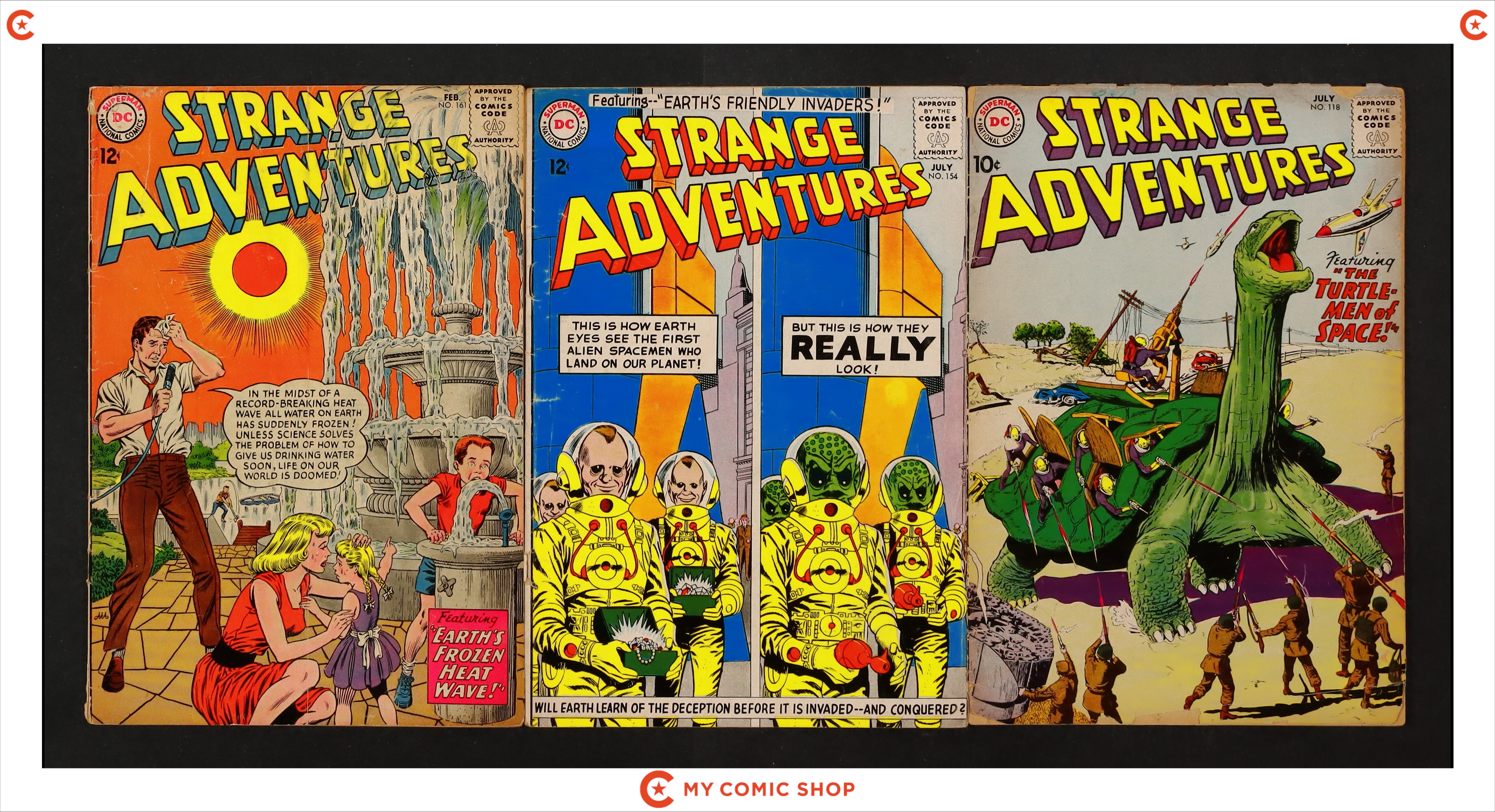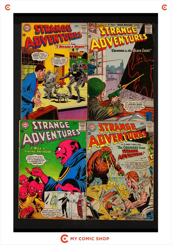 Issues 118, 154, and 161 of Strange Adventures (1950 1st Series). Most will grade in the VG to GD range.