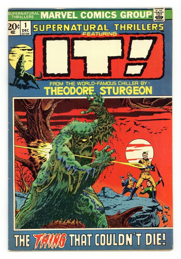Ends Feb 23 9:31 PM CST Bid History 7 bids Current Bid $20 Your Secret Max Bid If you'd like to bid, please log in or register. Cover art by Jim Steranko. It, script by Theodore Sturgeon (Original Story) and Roy Thomas (Adaptation), pencils by Marie Severin, inks by Frank Giacoia; The muck-encrusted monster named It shambles thru the forest, where it encounters the Drew family. 32 pgs. $0.20. Cover price $0.20.