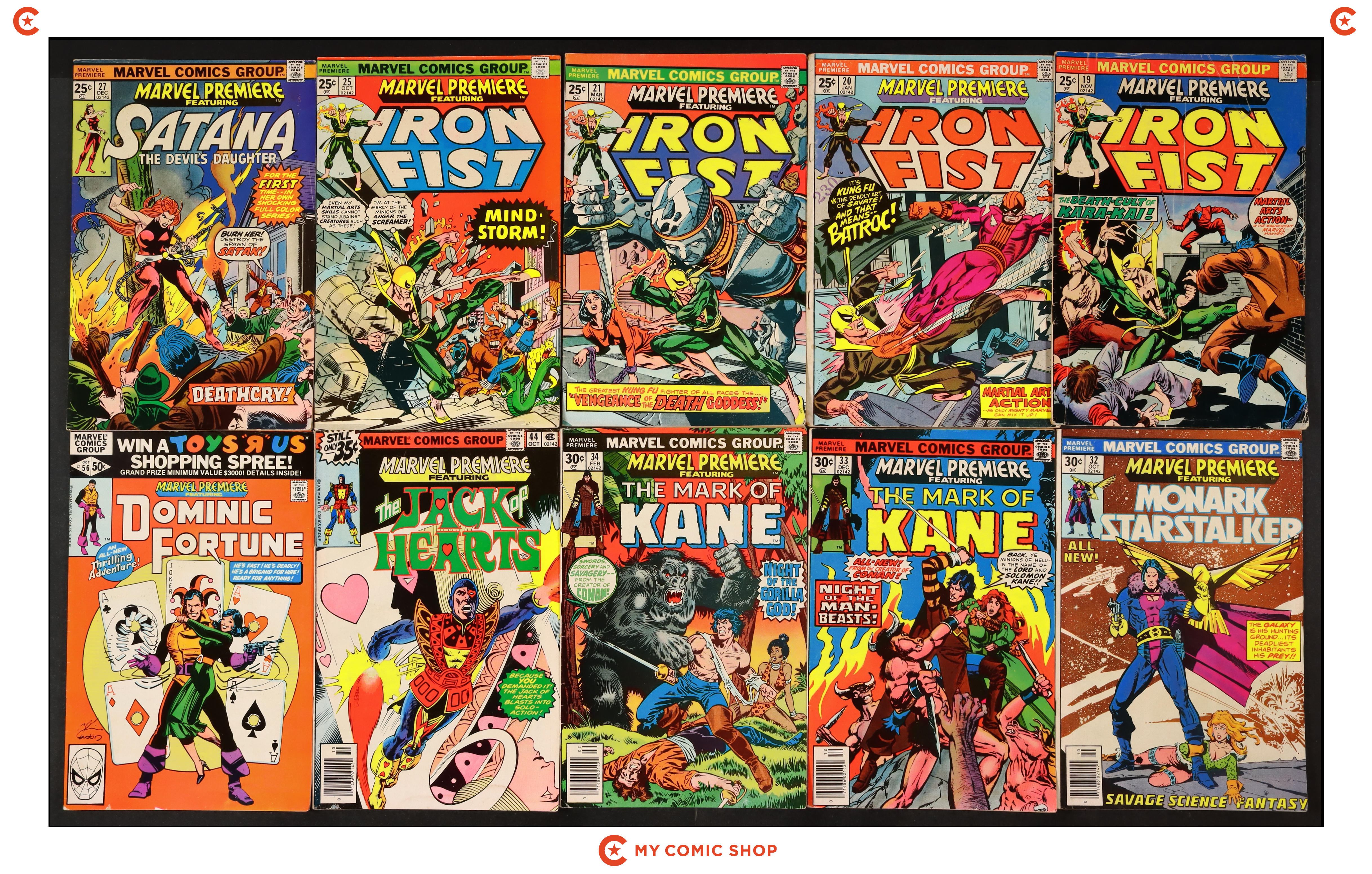 Issues 2, 7, 11, 12, 14, 17, 24, 25, 29, and 30 of Marvel Premiere (1972). Most will grade in the GD to VG range with #25 grading FR.
