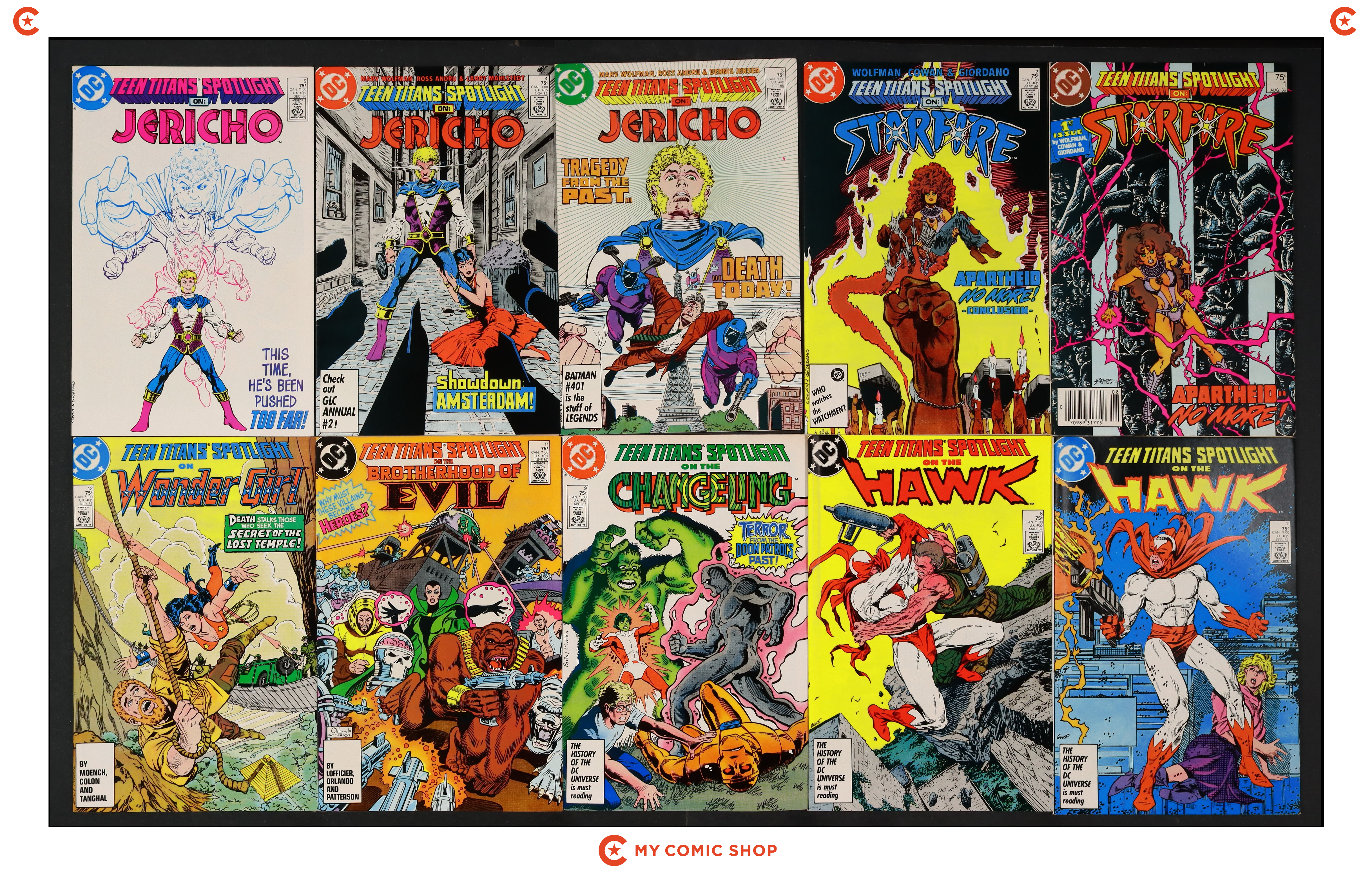 Issues 1N-5, 7-9, 11, 12 of Teen Titans Spotlight (1986). Most will grade in the FN to VF range with #1 grading VG.
