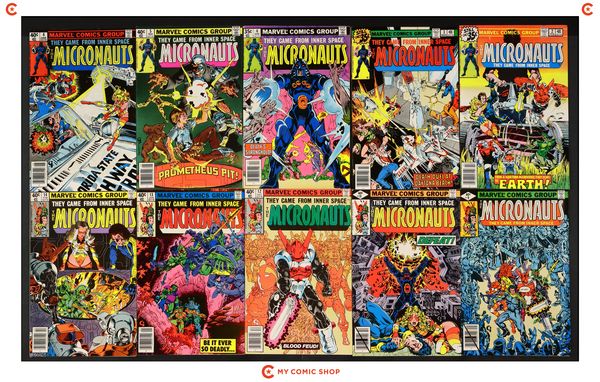 Issues 2, 3, 4, 5, 6, 9, 10, 12, 13, 14 of Micronauts (1979 1st Series). Most will grade in the VG/FN to FN/VF range.