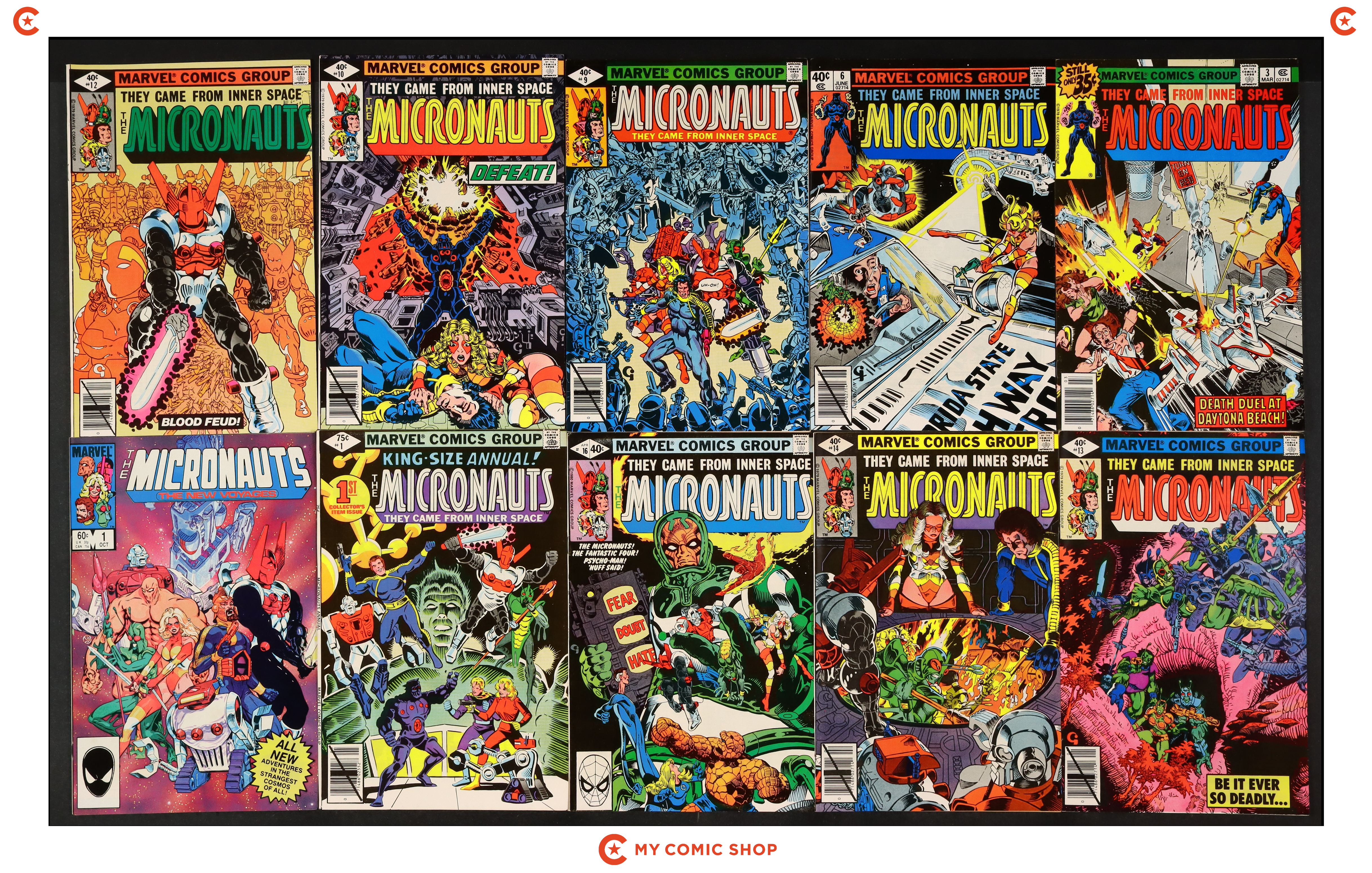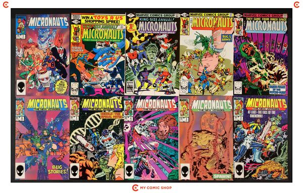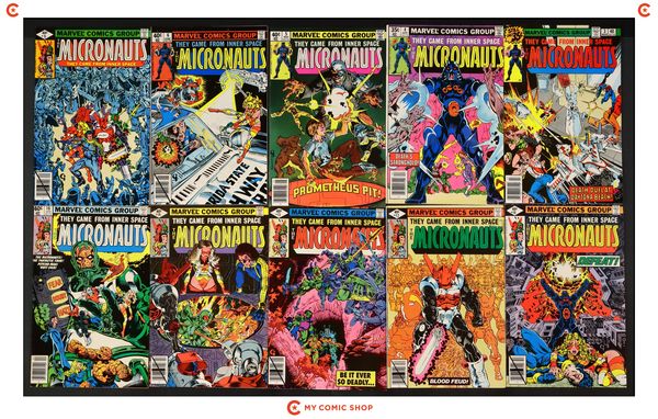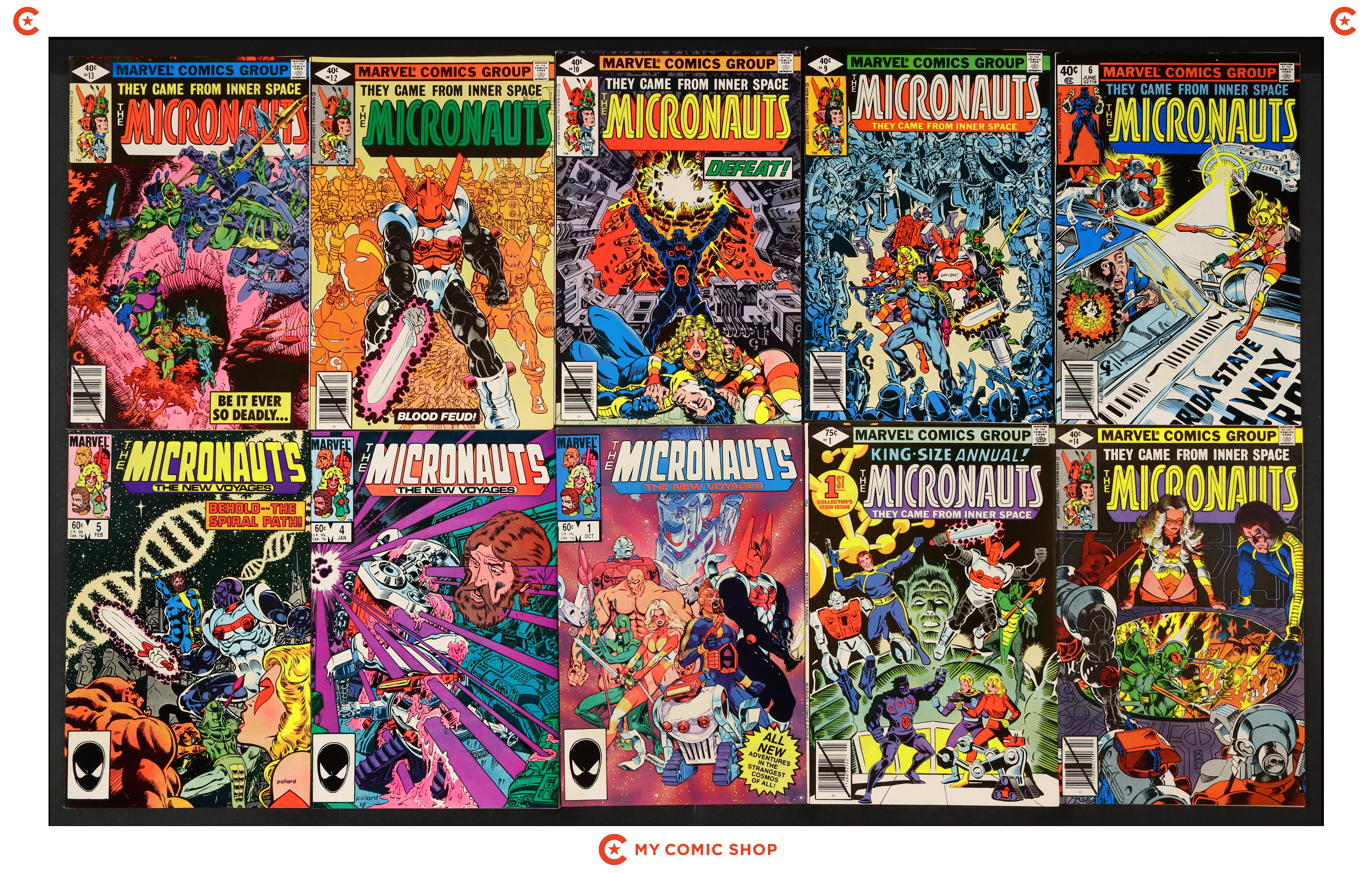 Issues 6, 9, 10, 12, 13, 14; Annual 1 of Micronauts (1979 1st Series); and 1, 4, 5 of Micronauts The New Voyages (1984). Most will grade in the FN to VF range.