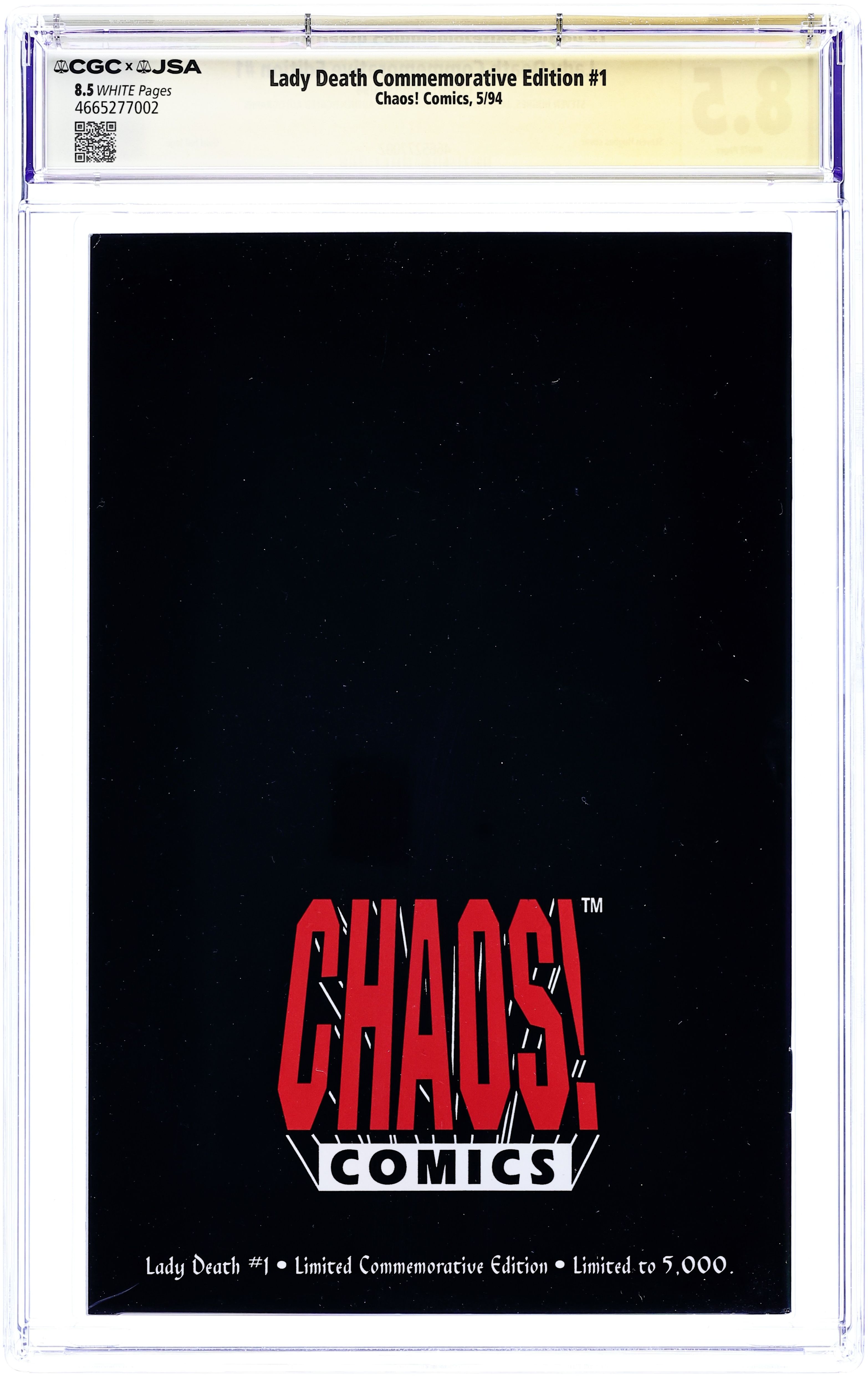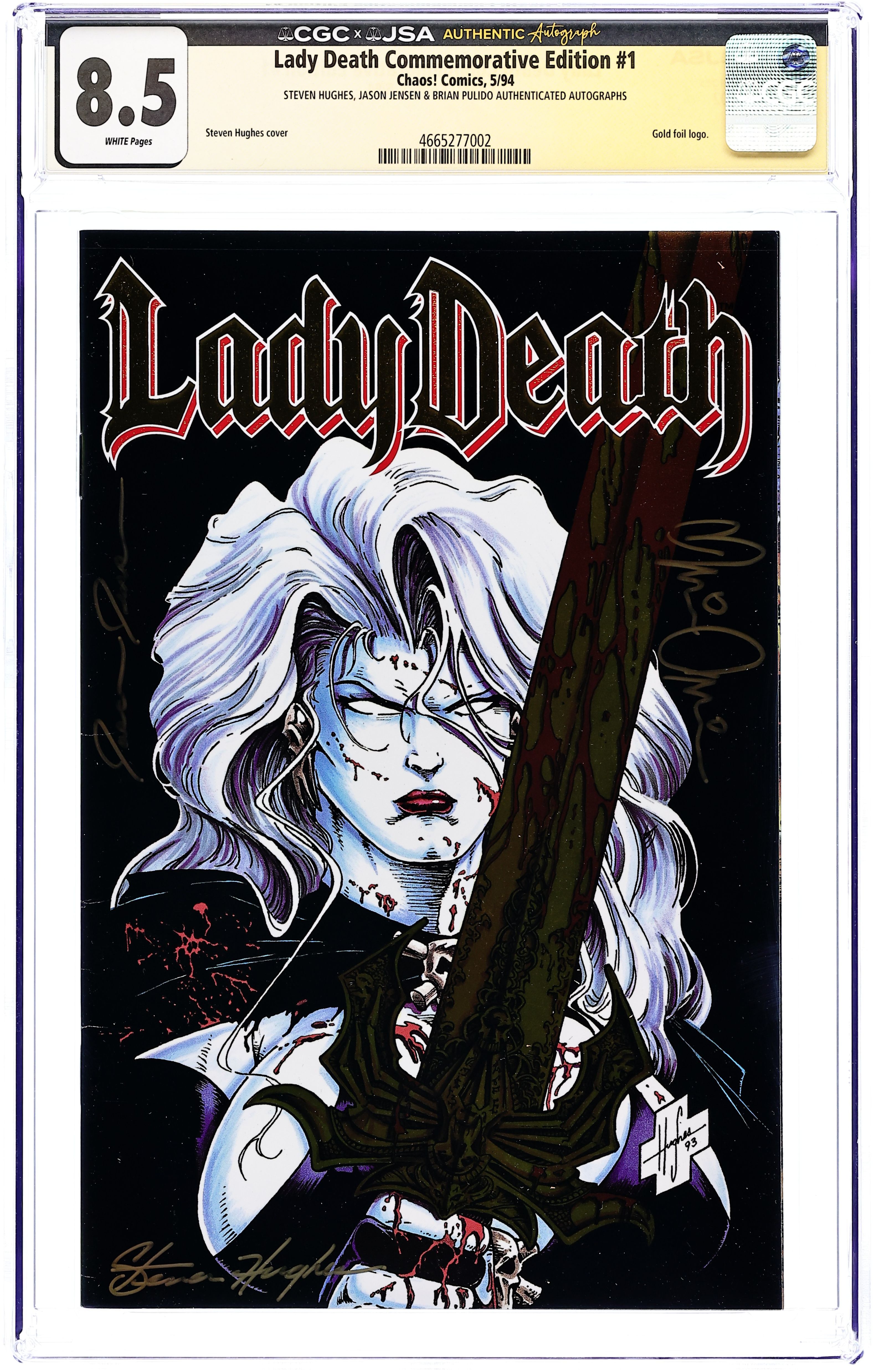 Lady Death (1994 Limited Series) 1COMMSIGNED CGC 8.5 JSA Hughes/Jensen/Pulido