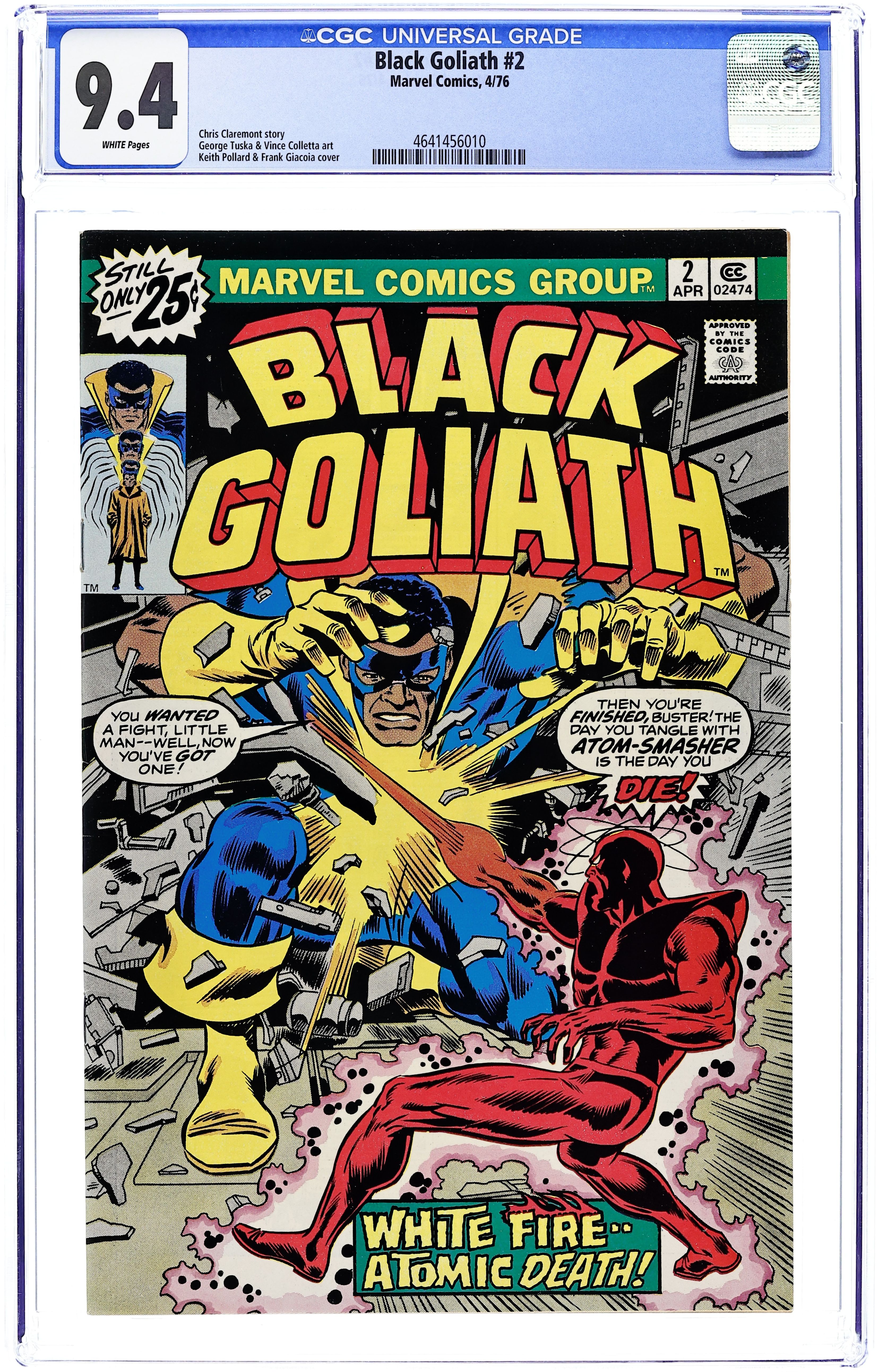 Cover pencils by Rich Buckler, inks by Frank Giacoia. White Fire, Atomic Death script by Chris Claremont, pencils by George Tuska, inks by Vince Colletta; Black Goliath battles the Atom-Smasher and Warhawk (and probably the Kingpin working behind-the-scenes, though it's somewhat vague); Black Goliath eventually defeats Atom-Smasher after taking a severe beating. Spider-Man stars in a one-page Hostess ad, The Cupcake Caper, inks by Mike Esposito. 36 pgs. $0.25. Cover price $0.25.