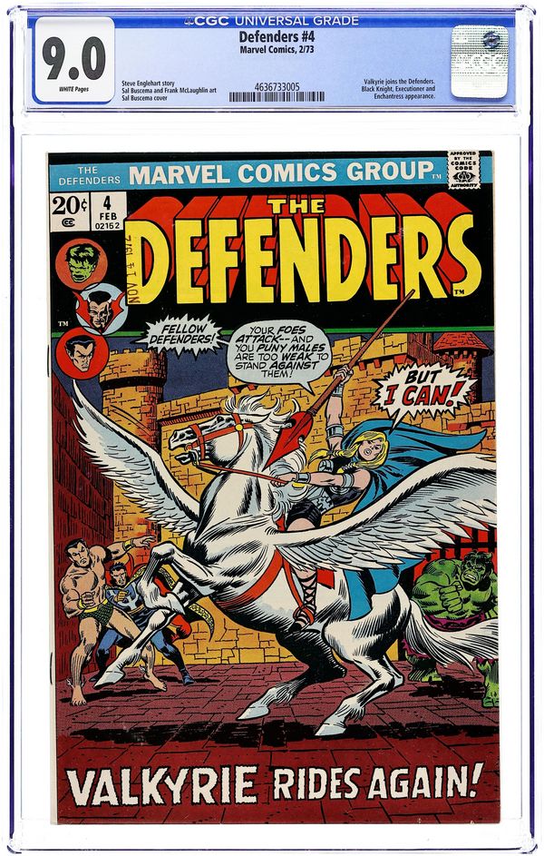 Cover pencils by John Buscema and Jim Starlin (cover layout), inks by Frank Giacoia. The New Defender!, script by Steve Englehart, pencils by Sal Buscema, inks by Frank McLaughlin; Enchantress transforms Barbara into the Valkyrie and turns the Black Knight to stone; Valkyrie takes Aragorn as her horse; Omegatron down to 89 hundredths. 36 pgs. $0.20. Cover price $0.20.