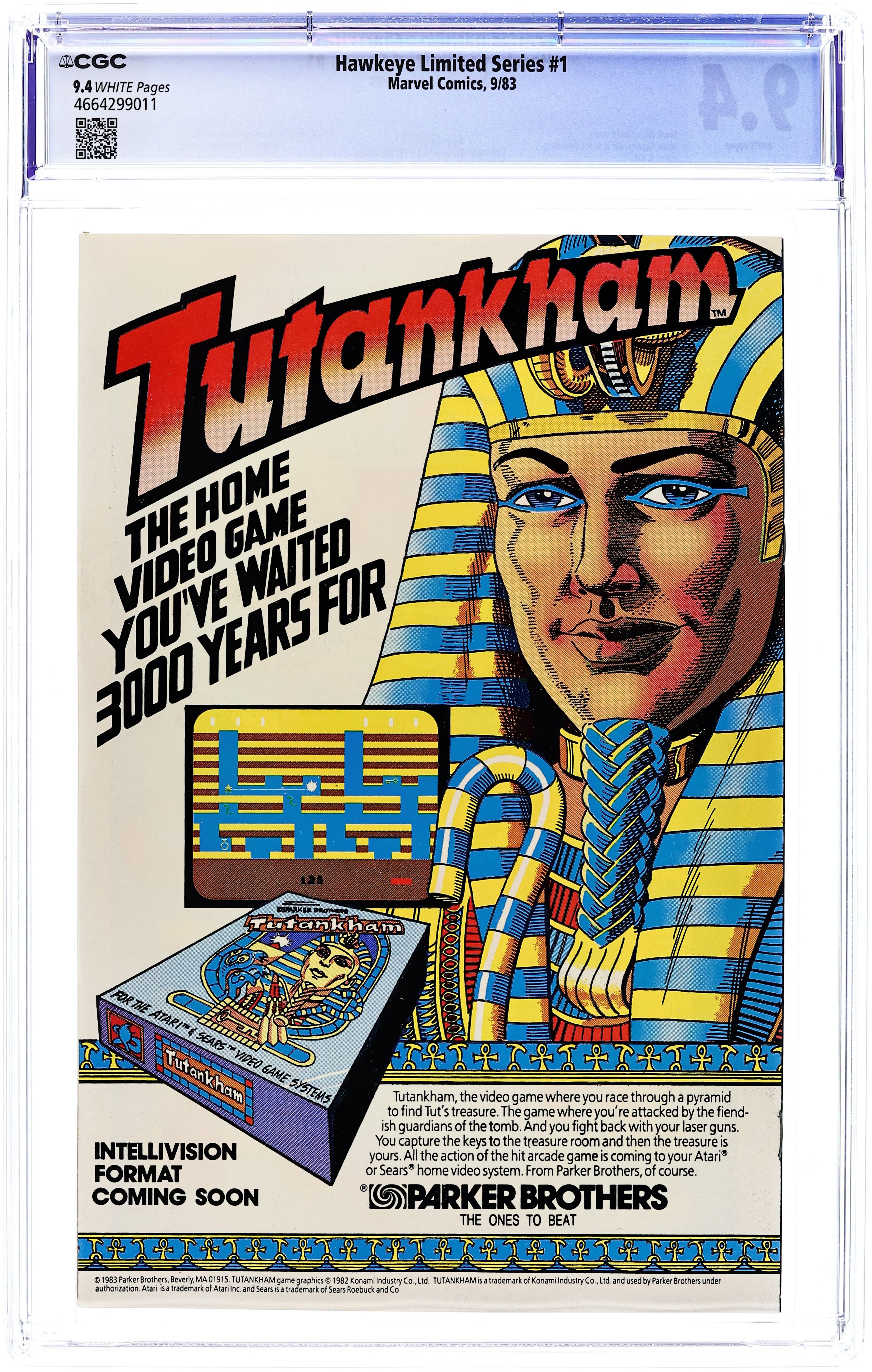 Direct Edition. "Listen to the Mockingbird" Guest-starring Mockingbird. Script by Mark Gruenwald. Art by Mark Gruenwald (pencils) and Brett Breeding (inks & embellishes). Cover by Mark Gruenwald and Brett Breeding. At last the Avengers' ace archer has his own limited series! And at the moment life is great for Clint Barton with a new job, new rocket-sled, and new girlfriend! But a late night encounter with a mysterious woman called Mockingbird turns Hawkeye's dream world upside down! The ex-SHIELD agent tells the bow-slinger that his employer, Cross Technological Enterprises, is involved in criminal activities! But Hawkeye doesn't believe her! However he will... after he's double-crossed by Cross! Retelling of Hawkeye's origin. Flashback cameos by Barney Barton, Iron Man, Captain America, Quicksilver, Scarlet Witch, and the Swordsman. (Notes: Mockingbird previously appeared in Marvel Team-Up 95. This four-part limited series was reprinted in 1988 in the trade paperback: Hawkeye; and again in 2009 in the trade paperback: Avengers Hawkeye.) 32 pages. Cover price $0.60.