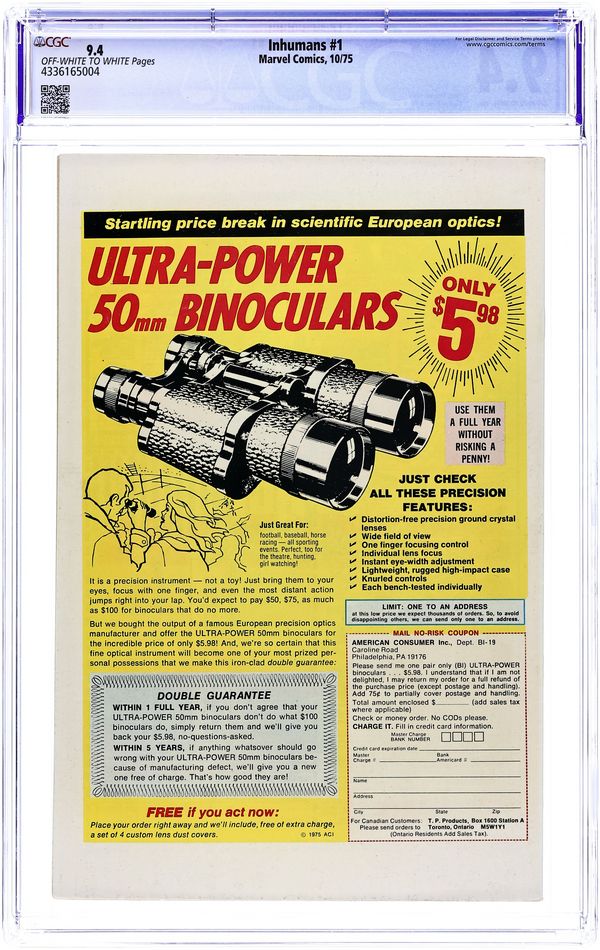 They're back -- because you demanded it! Black Bolt and his comrades in-combat battle Blastaar the Living Bomb! Featuring: 19 page Inhumans story "Spawn of Alien Heat." Characters: Inhumans [Black Bolt; Medusa; Karnak; Gorgon; Triton]; Villain: Blastaar; Maximus; Intro: Iridia; Guest: Stallior; Centarius; Leonus; Avius; Hulk (flashback); Human Torch [Johnny Storm] (flashback). Written by Doug Moench, with art by George Perez and Frank Chiaramonte. Cover by Gil Kane and Frank Giacoia. Cover price $0.25.