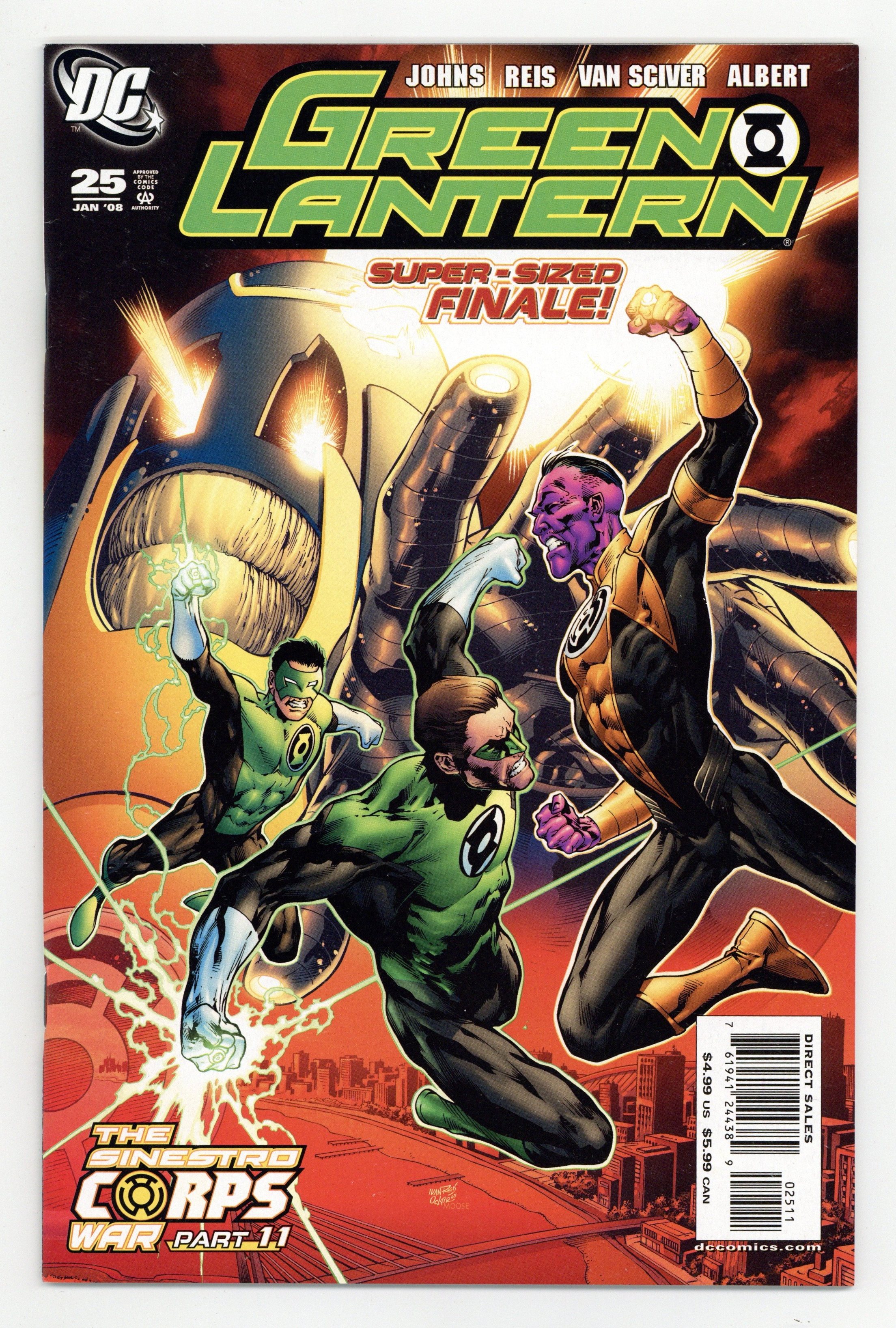 Direct Edition. Cover by Ivan Reis. Sinestro Corps War: Part 11 - Written by Geoff Johns Art by Ivan Reis, Ethan Van Sciver & Oclair Albert This is it! The most talked-about storyline of the summer, 'The Sinestro Corps War,' concludes in this double-sized anniversary issue! Why does Sinestro believe he has won? How will Hal Jordan stop his greatest enemy? What is the truth behind the prophecy of 'The Blackest Night'? Where will the end results of this battle take the Green Lantern Corps? What is the bizarre fate of the Anti-Monitor? Why has Earth been assigned so many Green Lanterns? Learn all the secrets! Witness all the battles! Prepare yourself for the startling ending of the greatest epic in the history of Green Lantern! Cover price $4.99.