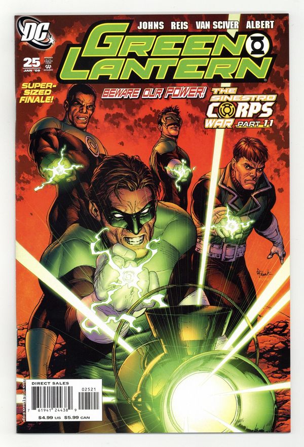 Tags: Green Lantern$30.00Llimited Edition Variant cover by Gary Frank. Sinestro Corps War: Part 11 - Written by Geoff Johns Art by Ivan Reis, Ethan Van Sciver & Oclair Albert This is it! The most talked-about storyline of the summer, 'The Sinestro Corps War,' concludes in this double-sized anniversary issue! Why does Sinestro believe he has won? How will Hal Jordan stop his greatest enemy? What is the truth behind the prophecy of 'The Blackest Night'? Where will the end results of this battle take the Green Lantern Corps? What is the bizarre fate of the Anti-Monitor? Why has Earth been assigned so many Green Lanterns? Learn all the secrets! Witness all the battles! Prepare yourself for the startling ending of the greatest epic in the history of Green Lantern! Cover price $4.99.