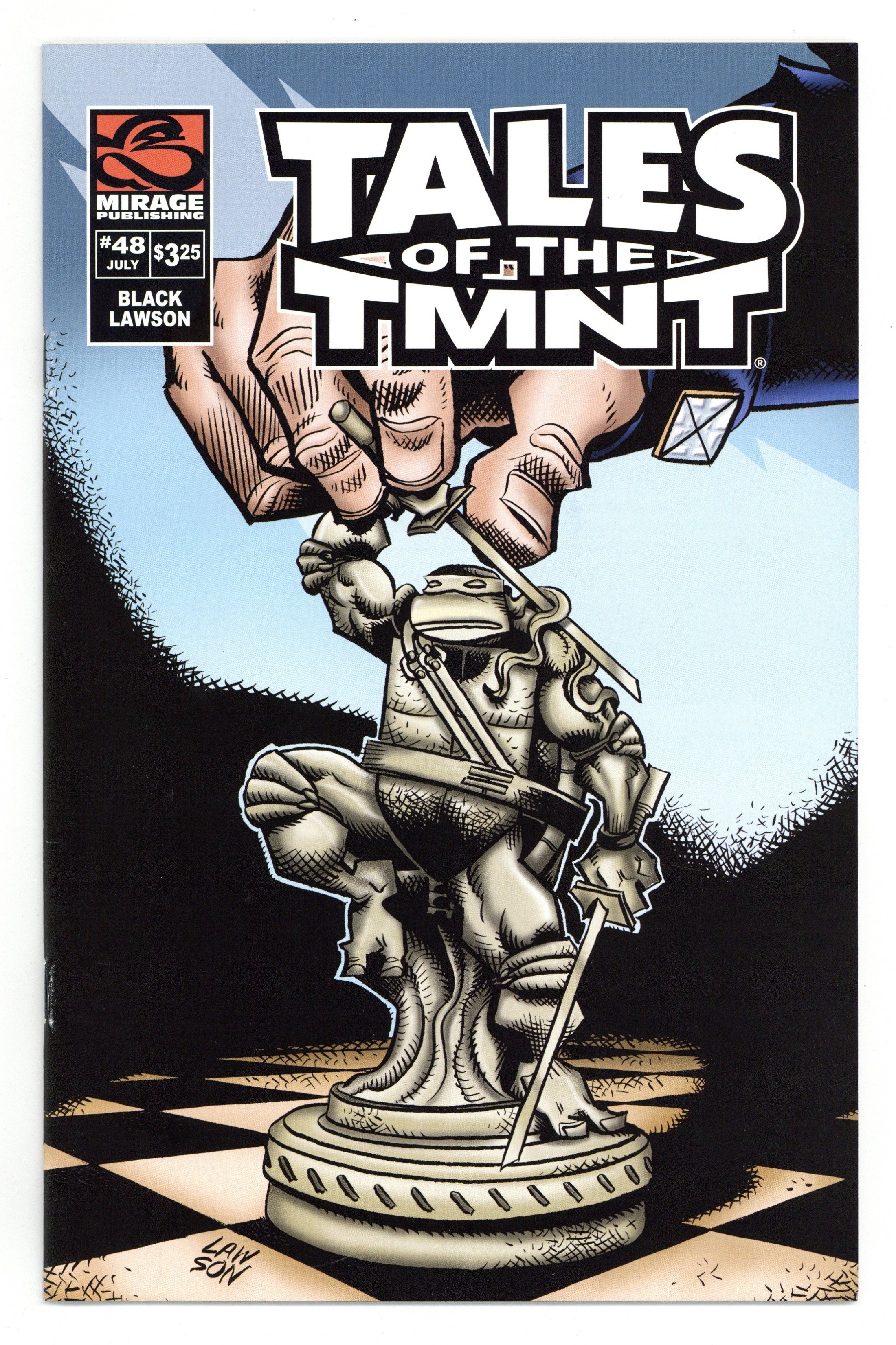 Published Jul 2008 by Mirage Studios.$16.75by Jack Black & Jim Lawson 'The Decider.' A brutal crime wave wrecks havoc upon the streets of Springfield, Massachusetts and all evidence points to the perpetrators as being mutant turtles! Leo, Don, Raph, Mike, Casey Jones, and Master Splinter struggle to solve the vicious robberies and find the real mastermind behind them before the TMNT are revealed by the local media! Cover price $3.25.