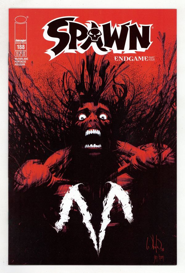 Endgame: Part 4 - story TODD McFARLANE & BRIAN HOLGUIN art WHILCE PORTACIO & TODD McFARLANE colors JIN HAN THE ENDGAME CONINUES! Over the past several issues, SPAWN has experience the most dramatic series of twists in its long history. Events that have rocked the status quo and echoed from the heights of Heaven to the pit of Hell. But what does it all mean? A young reporter following an obscure lead thinks he's stumbled upon the answer. As incredible as his suspicions may be, the truth is something far beyond his imagination. Brought to you by TODD McFARLANE, WHILCE PORTACIO and BRIAN HOLGUIN. Cover price $2.95.