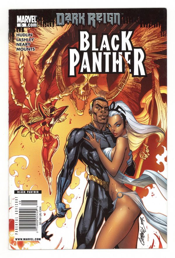 $22.00Dark Reign tie-in - Deadliest of the Species: Part 5 - Written by REGINALD HUDLIN. Art by KEN LASHLEY. Cover by J. SCOTT CAMPBELL. Wakanda stands at the brink. Morlun - Devourer of Totems - is cutting through the Wakanda army life a hot knife through butter as he descends on the palace to feast on T'Challa's body. Absolutely nothing can stop him. Wakanda's only hope is the new Black Panther...if she's worthy to inherit the mantle. 32 pages. Cover price $2.99.