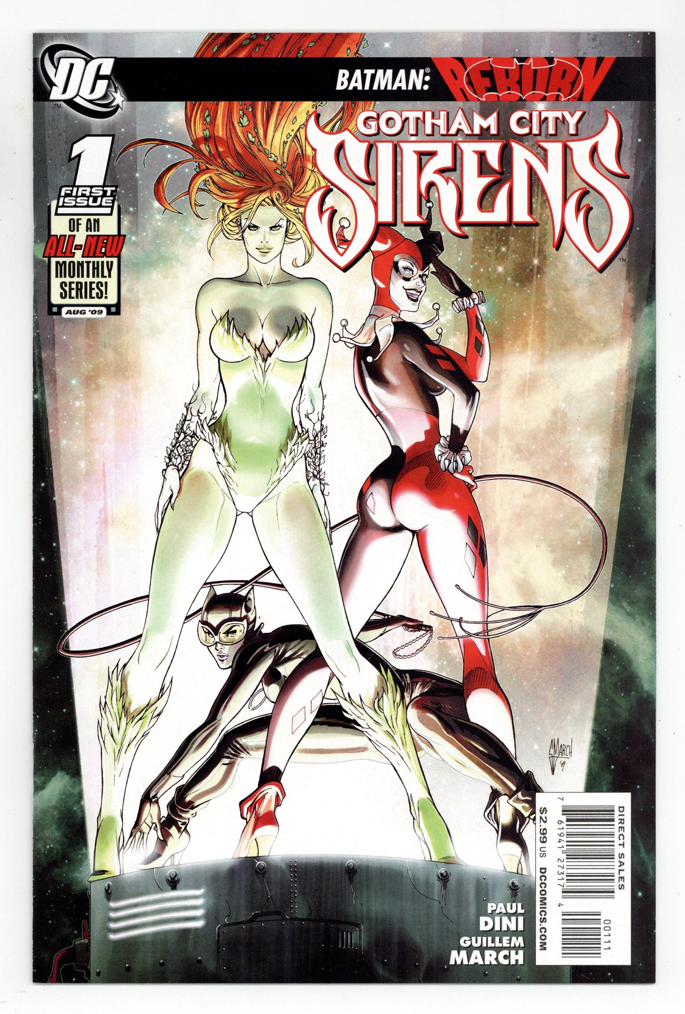 Cover by Guillem March. Written by Paul Dini Art by Guillem March. This all-new series features the bad girls of Gotham City! Catwoman, Poison Ivy and Harley Quinn are tired of playing by other people's rules regardless of which side of the law they're on. These tough ladies have a new agenda that's all their own, and they'll use any means necessary to pursue it. But can they get along and work as a team? And who will get hurt along the way? Cover price $2.99.