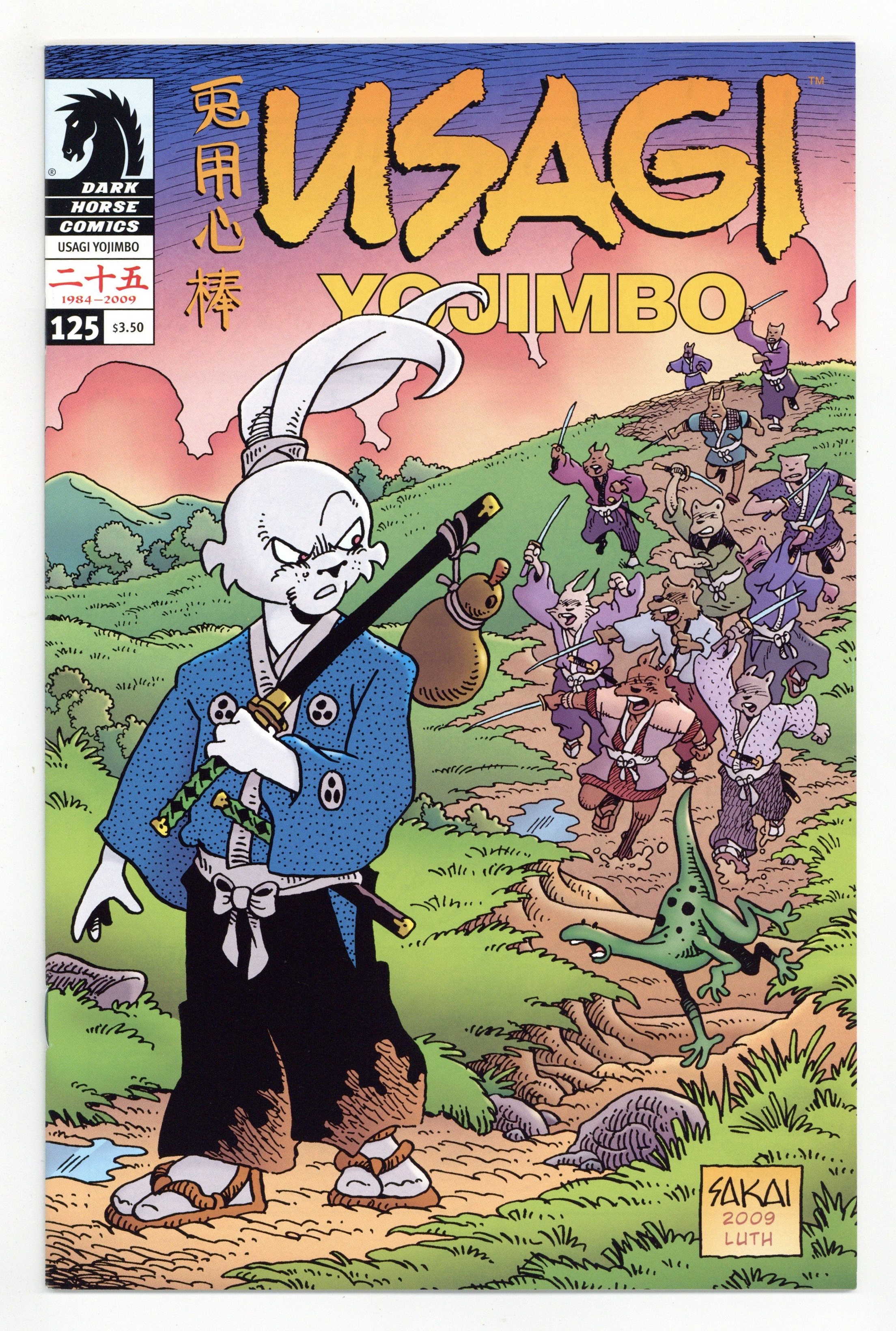 Published Dec 2009 by Dark Horse.$12.00A Town Called Hell: Part 2 of 2. Story and art by Stan Sakai. The gang war between Boss Higa and Boss Komo hits a fever pitch as the rabit ronin concludes his visit to 'A Town Called Hell'! Kato is a master swordsman, and one of the deadliest killers Usagi has ever encountered. Fortunately, Kato works for the highest bidder, and Usagi has persuaded him to stay out of the fight, for a price. After Komo's gang is crushed, Kato goes to Boss Higa for payment, only to find that Usagi has apparently taken all the money and disappeared. Now the determined killer is after that long-eared thief! Cover price $3.50.