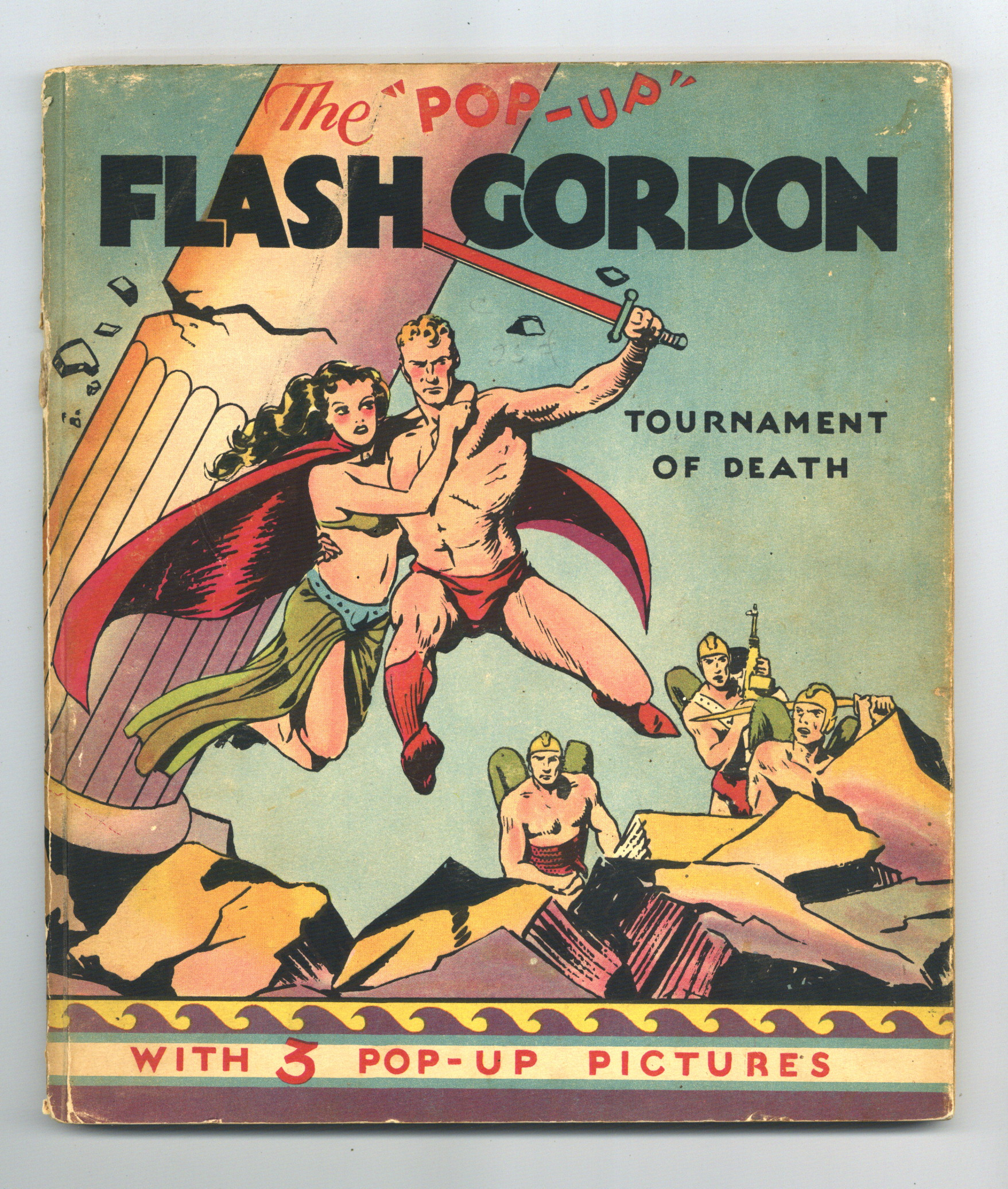 Published 1935 by Blue Ribbon Press.$720.00Pop-Up Flash Gordon Tournament of Death (1935 BRP BLB) #210, 8" x 9", 3 Pop-Ups, hardcover, Alex Raymond