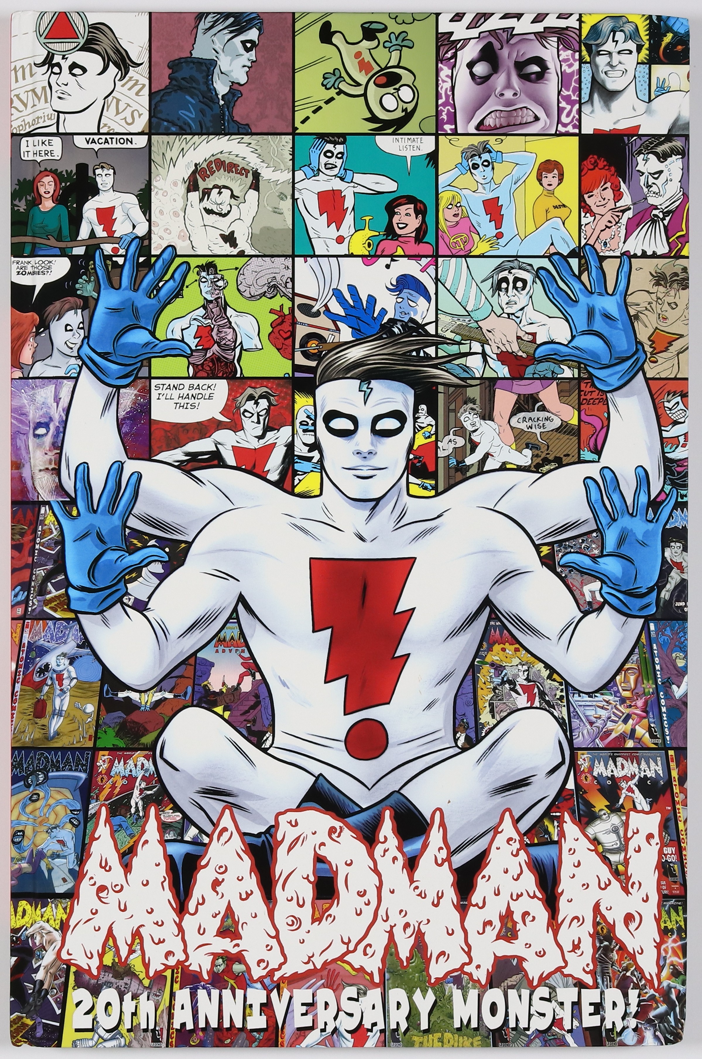 1st printing. By Mike Allred. FRAZETTA! KIRBY! TOTH! MOEBIUS! KUBERT! MILLER! STEVENS! The BIG one! Literally: This gigantic 11 x 17 hardcover is the coffee table book of the Millennium! Nearly every great artist to ever work in comics is in this book which includes new stories from PETER BAGGE, KYLE BAKER, PHILIP BOND & PETER MILLIGAN, DARWYN COOKE, DAVE COOPER, DEAN HASPIEL, LOS BROS HERNANDEZ, ERIK LARSEN, DAVID MACK, PAT McKEOWN, BERNIE MIREAULT, MICHAEL AVON OEMING, PAUL POPE, ERIC POWELL, FRANK QUITELY, STEVEN T. SEAGLE & TEDDY KRISTIANSEN, JEFF SMITH, JAY STEPHENS, CRAIG THOMPSON, MATT WAGNER, JOE QUINONES & MARIS WICKS. Also MICHAEL ALLRED's latest - and most epic ever - MADMAN story! PLUS almost every Madman illustration collected over the past 20 years from all the greats. Surprises galore! Hardcover, 11-in. x 17-in., 264 pages, full color. Cover price $100.00.