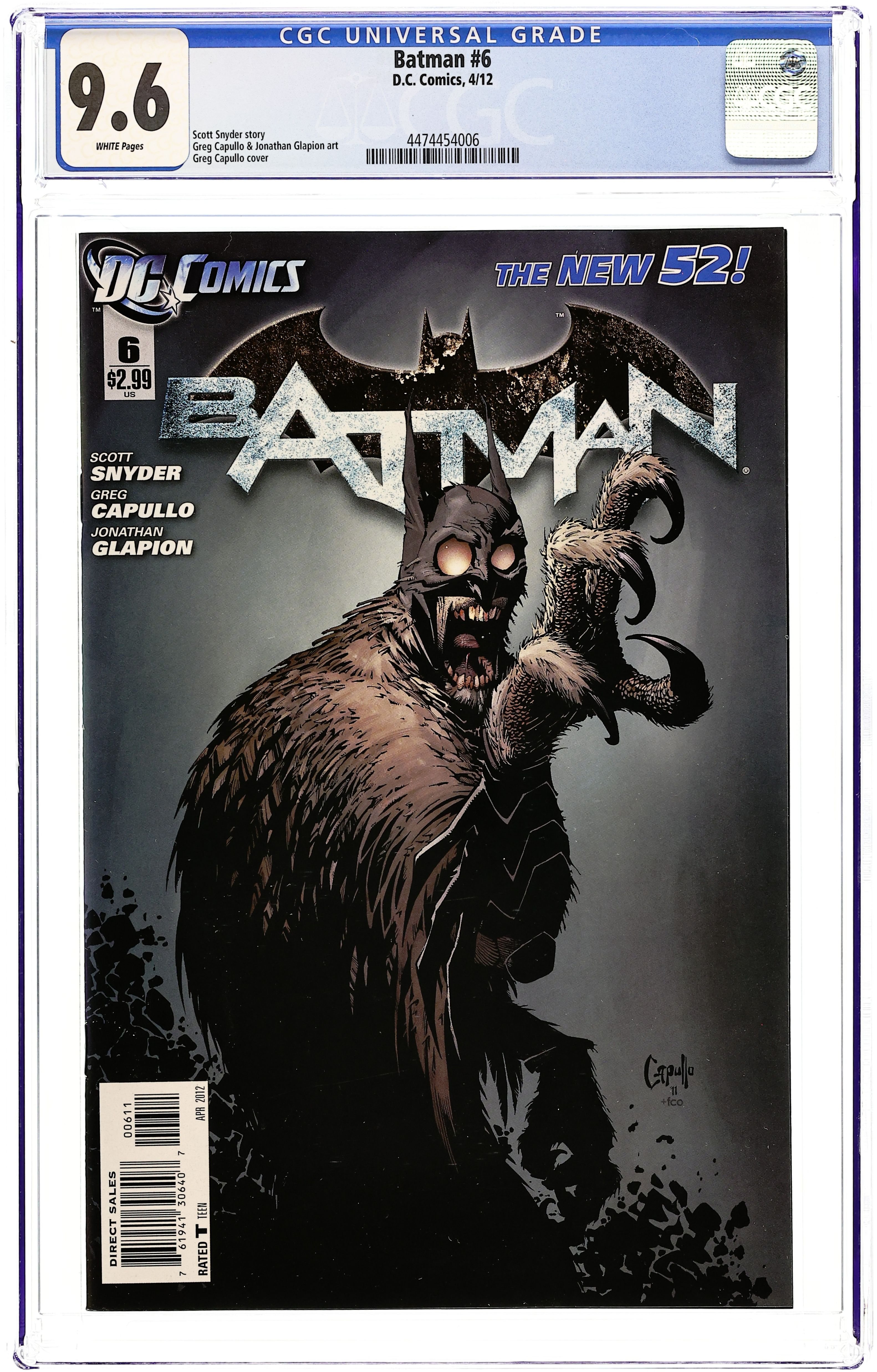 Cover by Greg Capullo (W) Scott Snyder (A) Greg Capullo, Jonathan Glapion Trapped far beneath Gotham City and hunted by the Talon - the Court of Owls' unstoppable killer - Batman lies bleeding and broken. With no way out and no one to help, is this the end for The Dark Knight? Cover price $2.99.