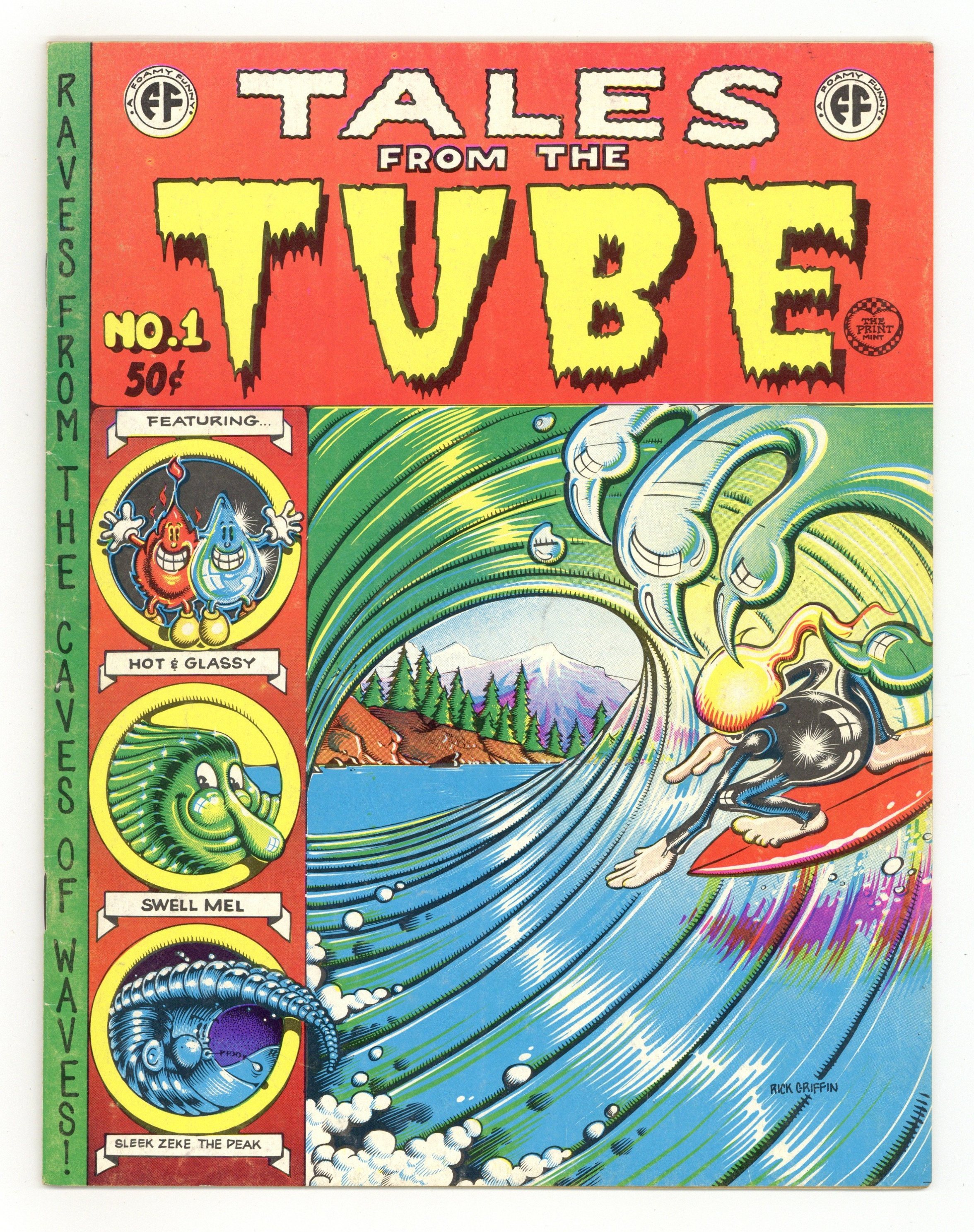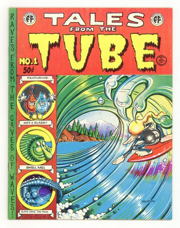 Tags: UndergroundPublished 1973 by Print Mint.$43.002nd Printing (50c cover/extra pages). Rick Griffin cover. 1 page comic on inside back cover by Robert Crumb starring Salty Dog Sam in "Goes Surfin!". Other artists are Rick Griffin, S. Clay Wilson, Robert Williams, Jim Evans, Glenn Chase, & Ogden; 32 pages; glossy full color centerfold; b&w; 7 1/8-in. x 9 1/4-in. Cover price $0.50.