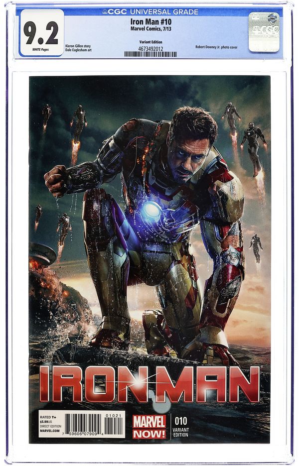 Limited 1 for 25 Iron Man 3 Movie Variant Cover. Secret Origin of Tony Stark: Part 2 - (W) Kieron Gillen. (A) Dale Eaglesham Many years ago, Howard and Maria Stark had a baby. There's something you don't know. Learn the truth about Las Vegas and Area 51 as the two great myths of Nevada collide. Meanwhile, in a distant galaxy, Tony Stark screams! The story that will shake Iron Man to his very core starts here!!! Cover price $3.99.