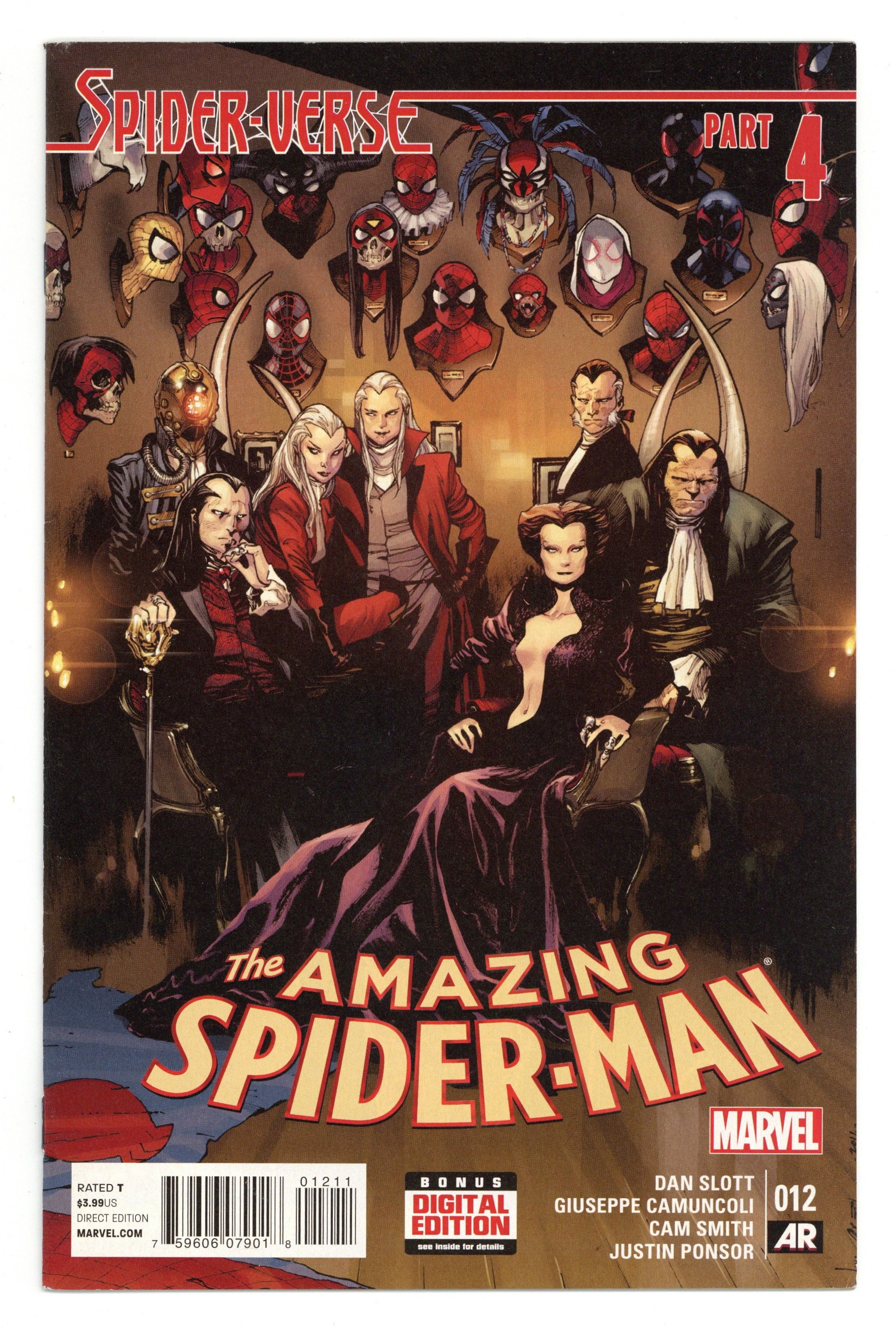 Tags: Marvel Legacy Numbering: Amazing Spider-Man (part 745), Spider-Verse (Marvel) (part 4), Spider-Man$16.00Spider-Verse: Part 4 of 6 - Written by Dan Slott. Art by Giuseppe Camuncoli. Cover by Olivier Coipel. THE FIRST HUGE BATTLE! Wait, if the first fights were just skirmishes, this can't mean anything good for the Spiders. Miles Morales shows his stuff! Silk finds something valuable on her run! Meet the most surprising Spider-Character yet! 28 pages, full color. Rated T Cover price $3.99.