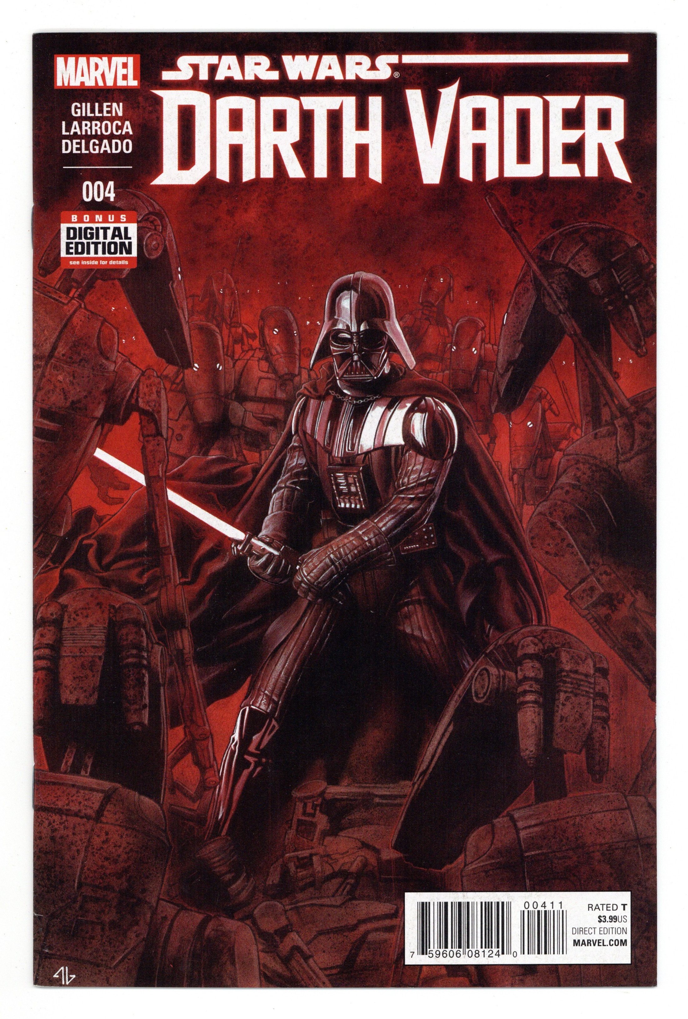 Tags: Star Wars$5.80Written by Kieron Gillen. Art by Salvador Larroca. Cover by Adi Granov. Revenge of the Battle Droids??? Vader returns to Geonosis to build his army! The Dark Lord's ascension continues! 28 pages, full color. Rated T Star Wars Lucasfilm Ltd. & TM. All rights reserved. Used under authorization. Text and illustrations for Star Wars are 2015 Lucasfilm Ltd. Cover price $3.99.