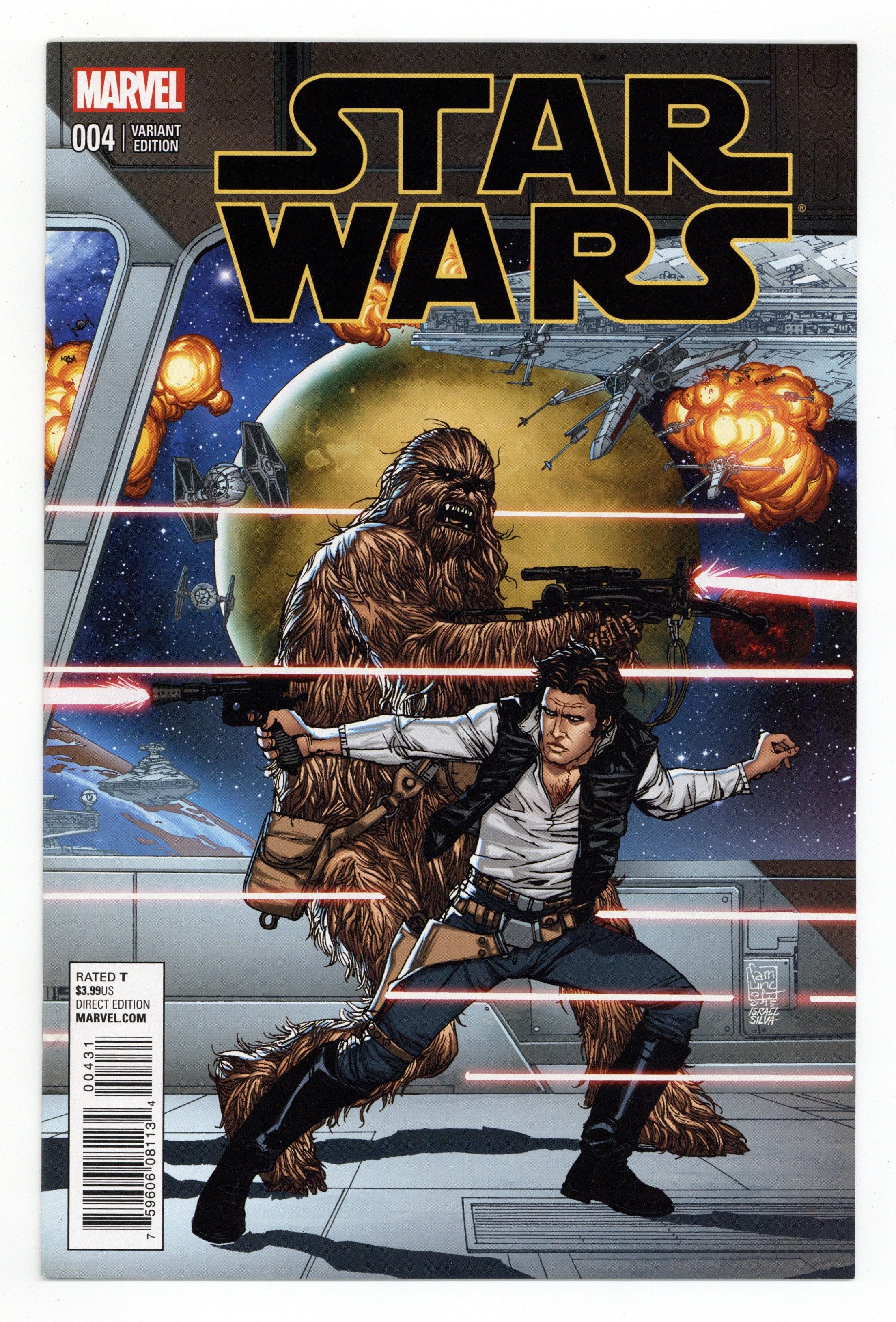 Tags: Star Wars$14.25Limited 1 for 25 Retailer Incentive Variant Cover. Written by Jason Aaron. Art by John Cassaday. Cover Giuseppe Camuncoli. THE GREATEST SPACE ADVENTURE OF ALL TIME CONTINUES! Luke Skywalker is NOT a Jedi-not yet, at least. He's only ever met one Jedi in his life...and he died. So, Luke's quest leads him back to Obi-Wan's hut...on Tatooine. 28 pages, full color. Rated T Star Wars Lucasfilm Ltd. & TM. All rights reserved. Used under authorization. Text and illustrations for Star Wars are 2015 Lucasfilm Ltd. Cover price $3.99.