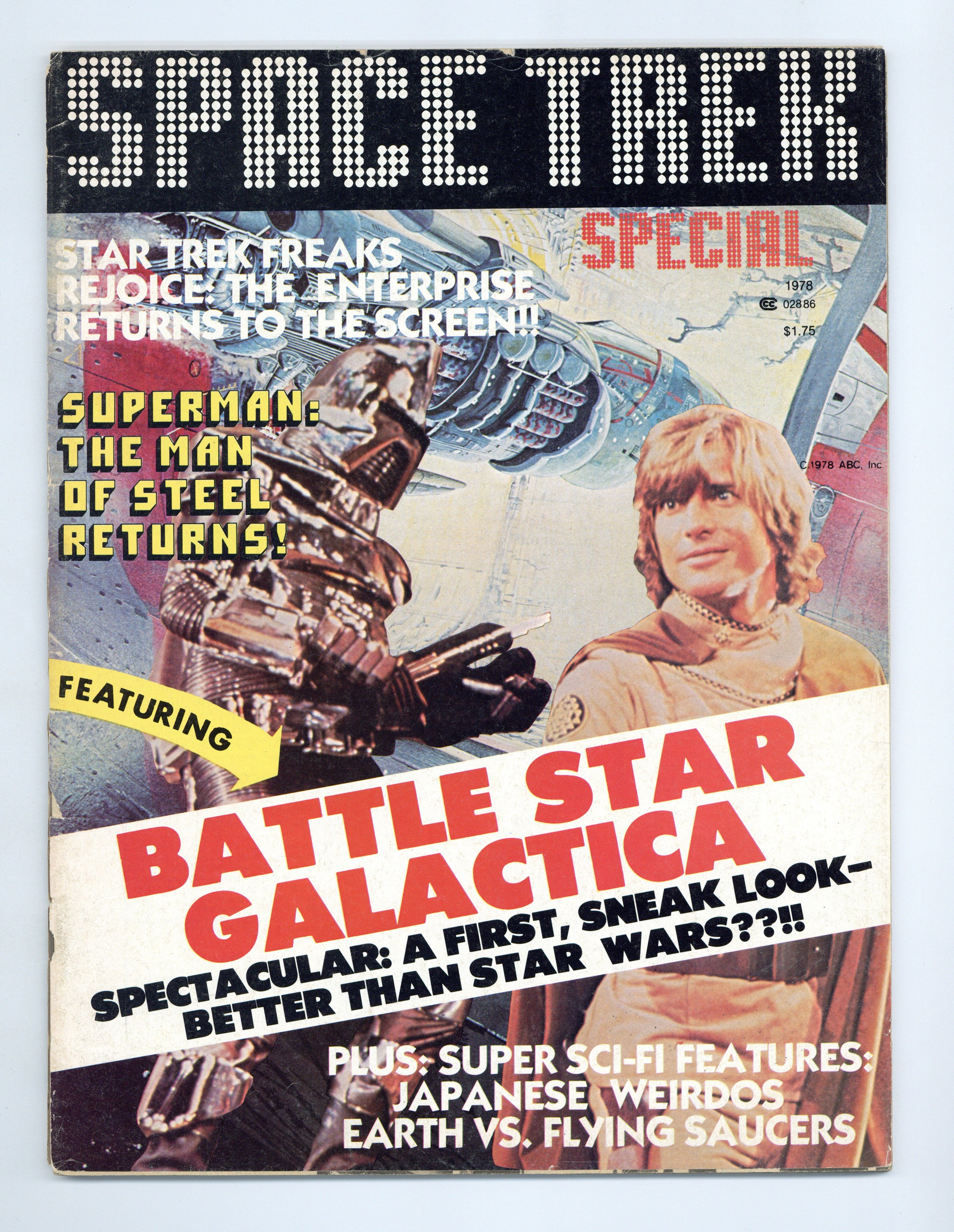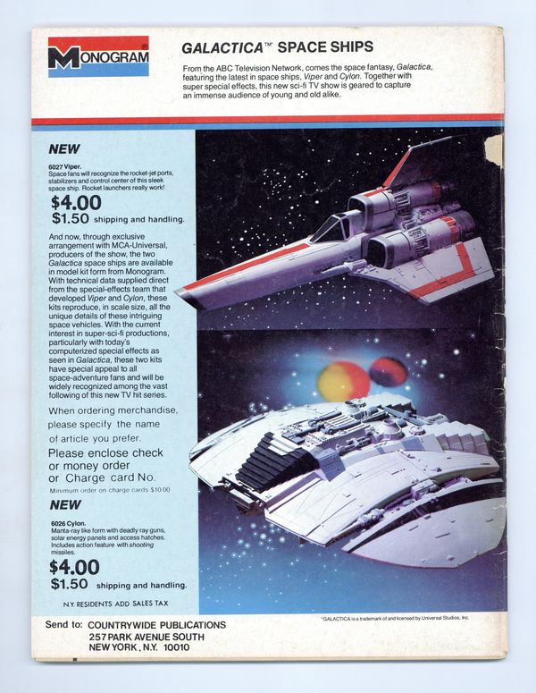Star Trek The Movie, the 1978 Superman movie, Battlestar Galactica, Supermarionation, Japanese SF (The Mysterians and Battle in Outer Space), rocket ships in SF movies, and a comic story by Don Lomax. Magazine format; black and white; 64 pages. Cover price $1.75.