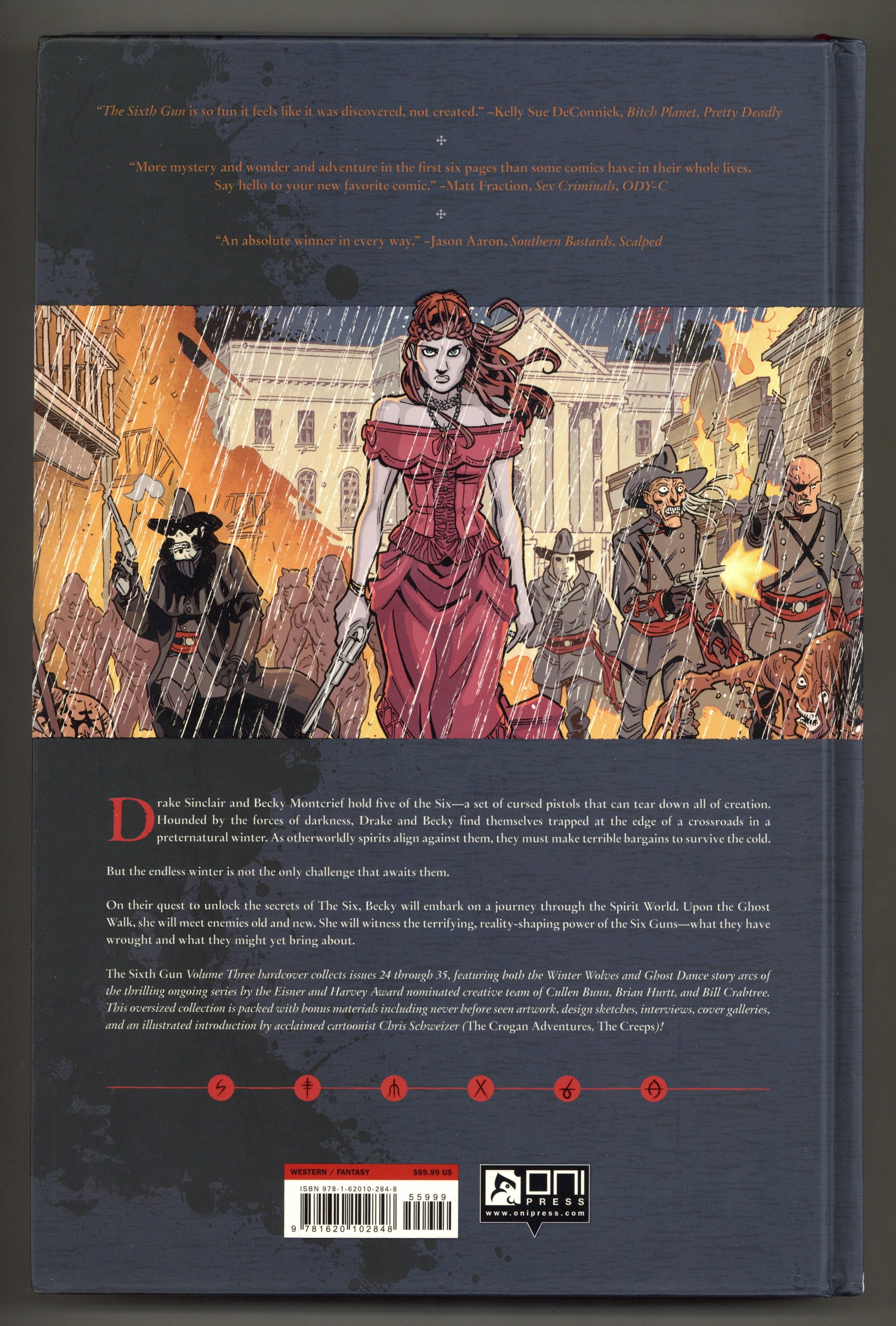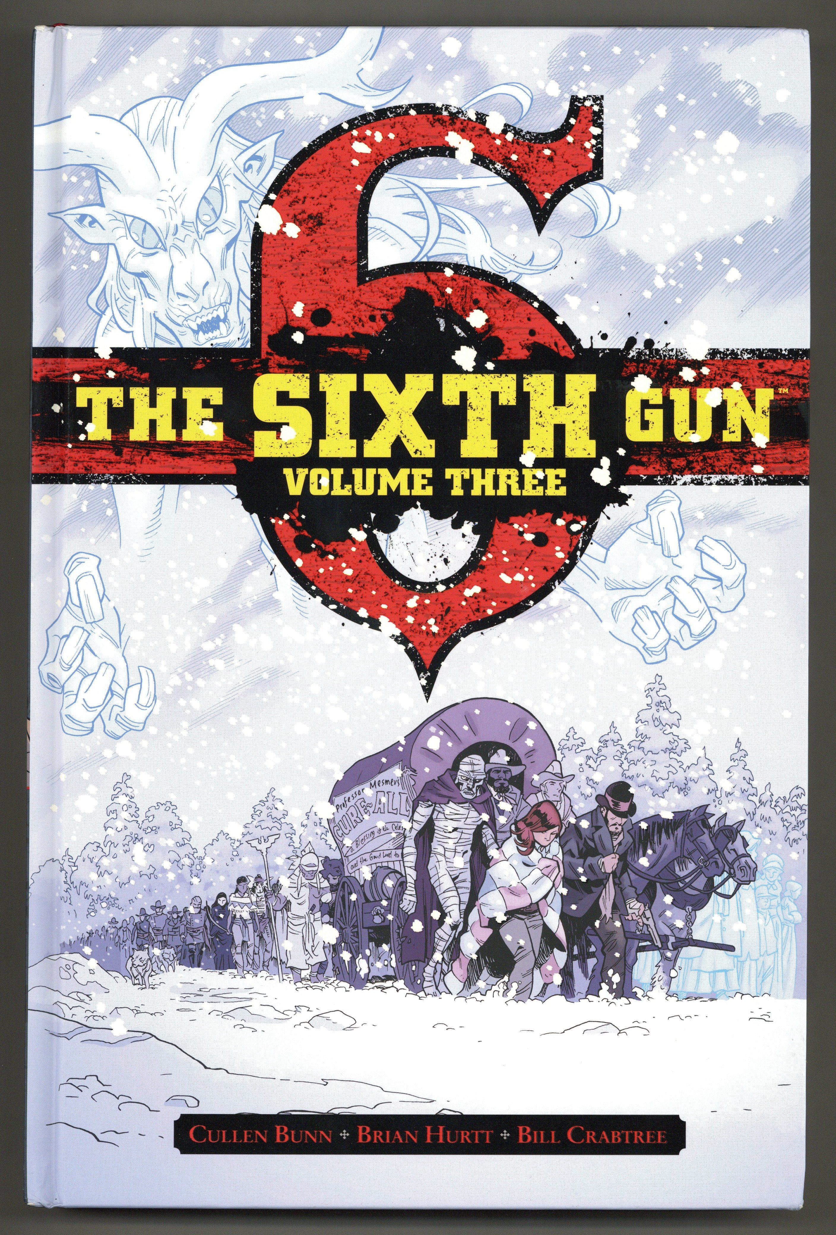 The Sixth Gun Volume Three Hardcover features both the "Winter Wolves" and "Ghost Dance" story arcs of the ongoing series by Cullen Bunn, Brian Hurtt, and Bill Crabtree.