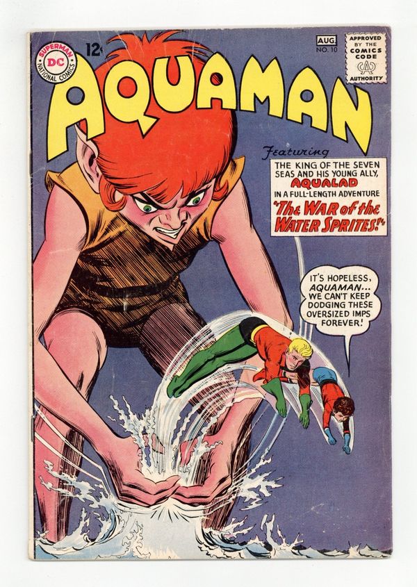 Cover art by Nick Cardy. The War of the Water Sprites, art by Nick Cardy; Aquaman goes to Quisp's home world; Quirk removes Quisp's powers; giants plan to invade the surface world. Homer the Skin Diver humor page by Henry Boltinoff. City Under the Ice article. 36 pgs. $0.12. Cover price $0.12.