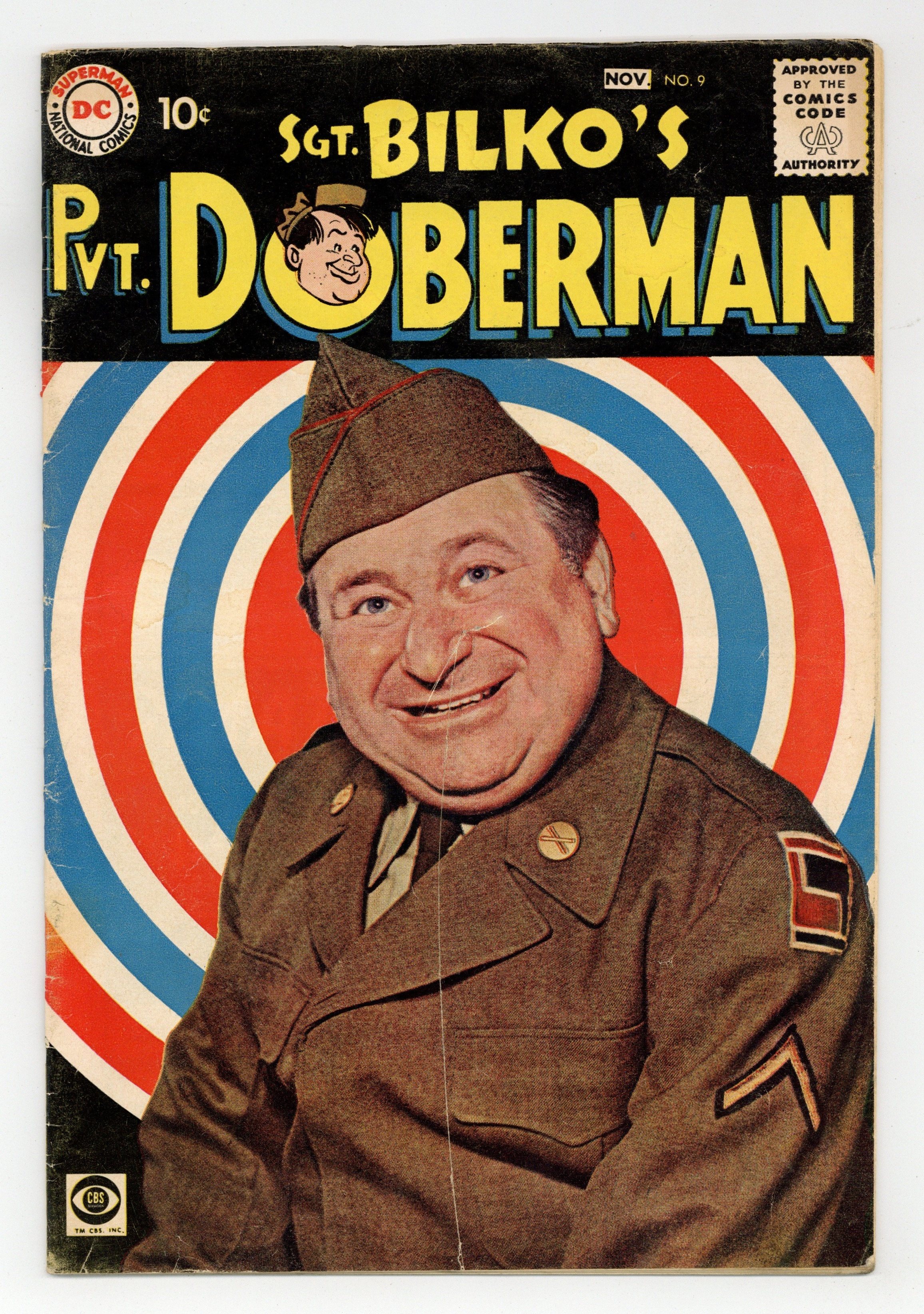 Photo cover of Maurice Gosfield (as Pvt. Duane Doberman). The Colonel's Pet, art by Bob Oksner; Problems start for the base when Bilko runs out of cash at the same time a Maharajah from India presents Col. Hall with an elephant as a gift. Khaki Yaks humor page by Henry Boltinoff. 36 pgs. $0.10. Cover price $0.10.